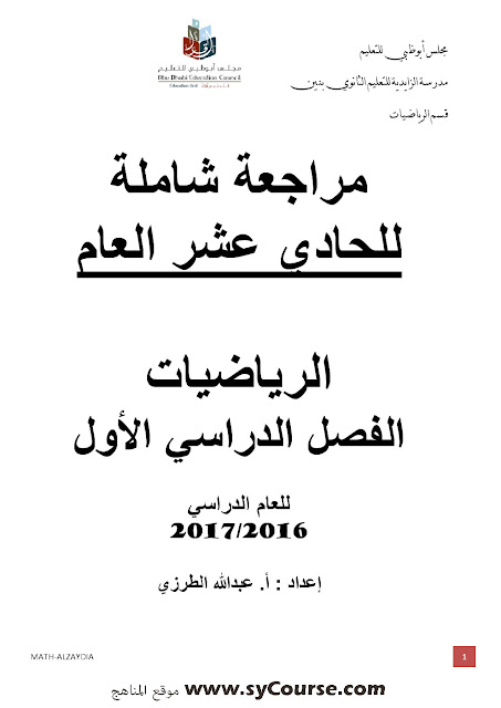 معلومات الملف: الصف الحادي عشر العام, الفصل الأول, رياضيات, مراجعة شاملة ونهائية لامتحان نهاية الفصل الأول من العام الدراسي 2016-2017 | ||
