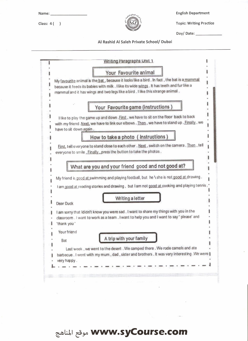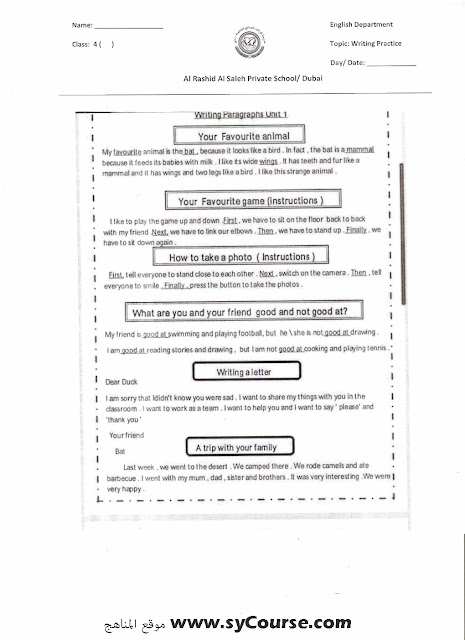 معلومات الملف: الصف الرابع, الفصل الأول, لغة انكليزية, جميعمواضيعالوحدة الاولى | ||