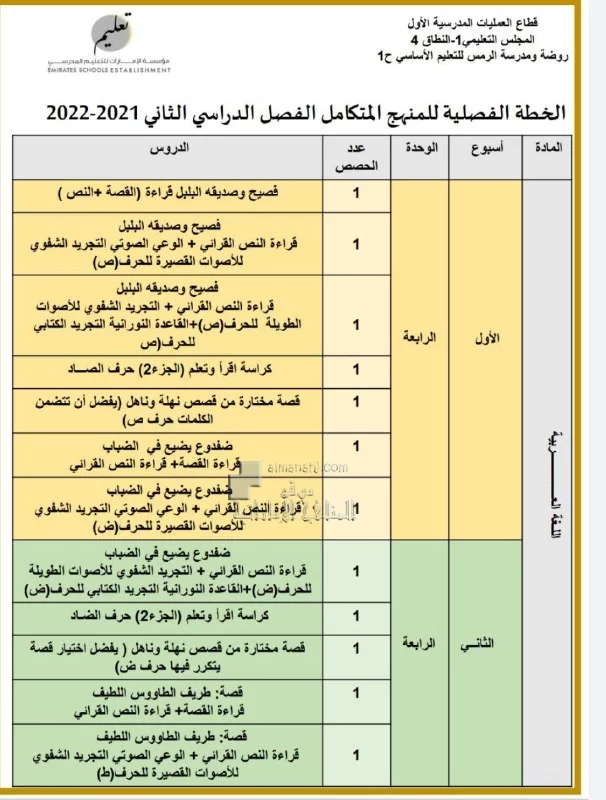 تم إيجاد الملف: الخطة الفصلية اللغة العربية المنهج المتكامل