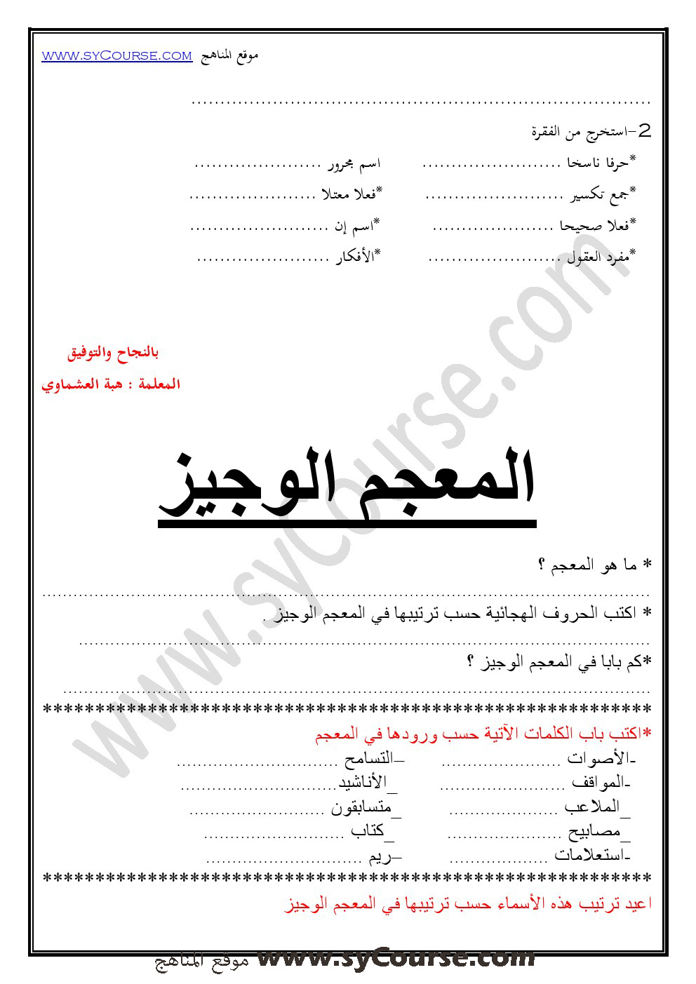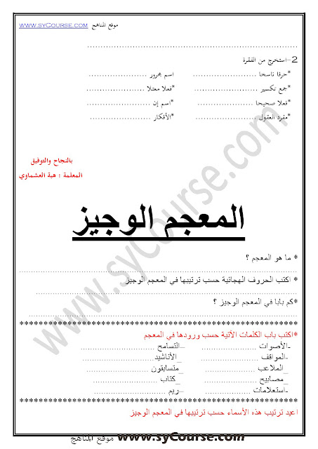 1. كل ما يخص امتحان الاعادة (تمكين) للصف السابع