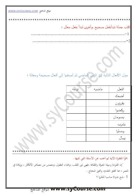| 1. كل ما يخص امتحان الاعادة (تمكين) للصف السابع