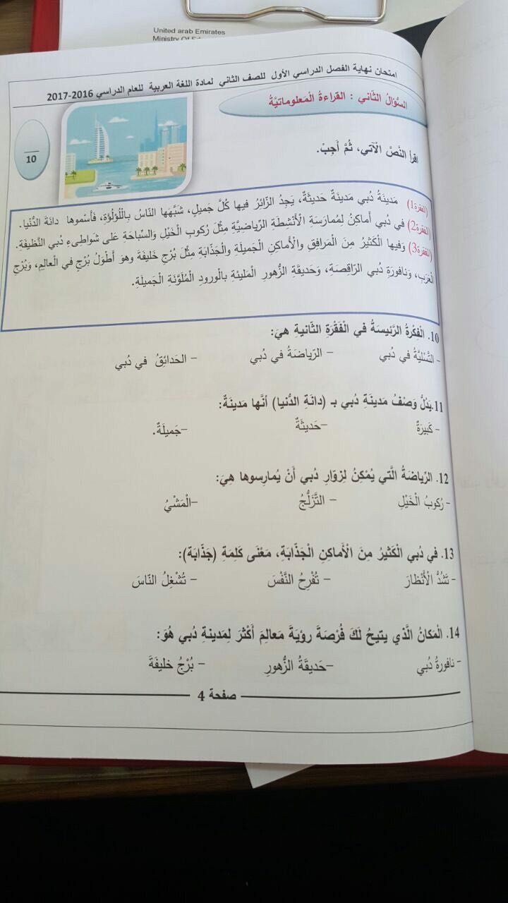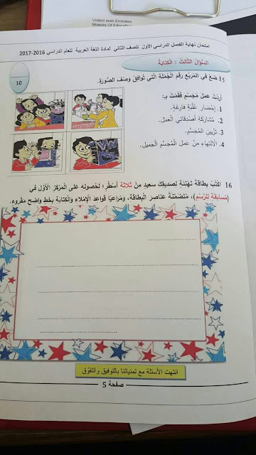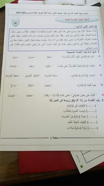 معلومات الملف: الصف الثاني, الفصل الأول, لغة عربية, امتحان نهاية الفصل الأول الوزاري للعام الدراسي 2016-2017 | ||