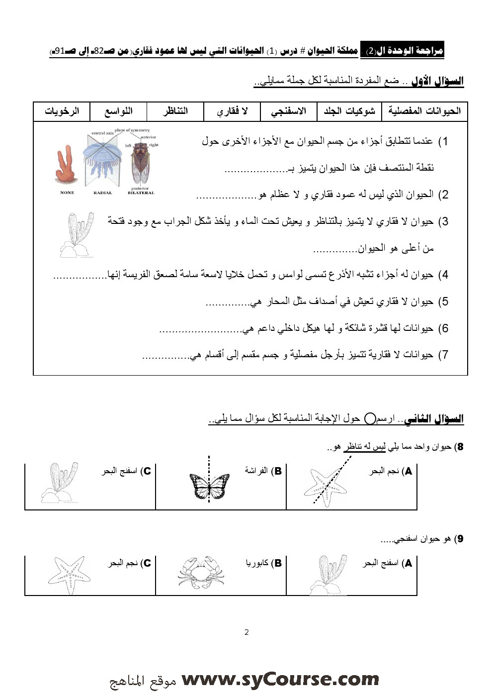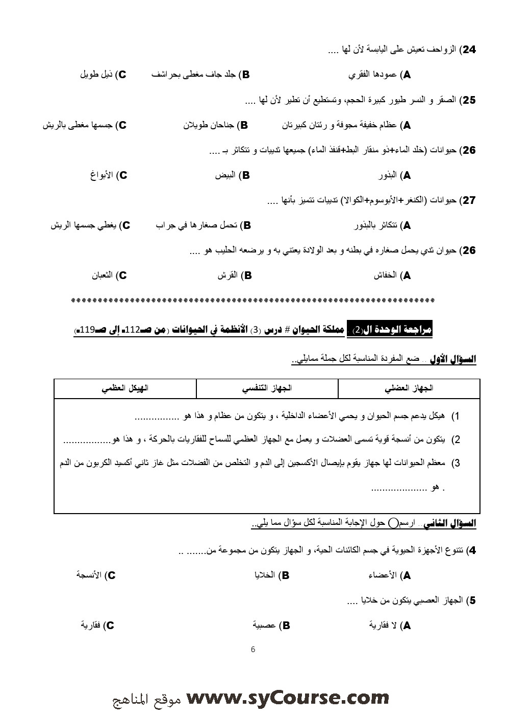 أسئلة تدريبية في الوحدات الثانية والثالثة والرابعة | ||