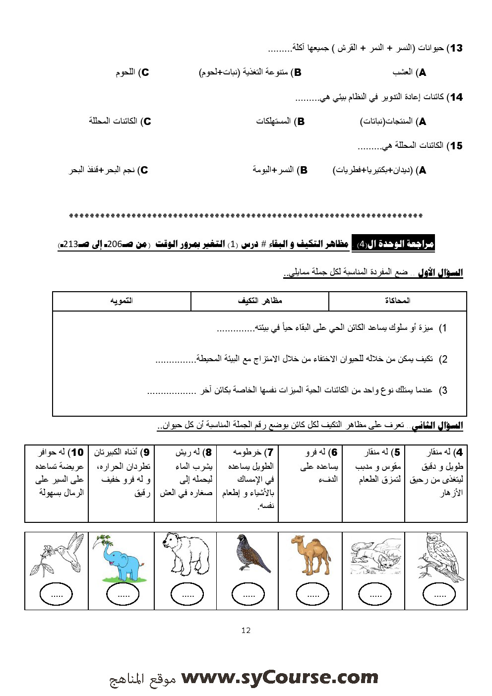 معلومات الملف: الصف الرابع, الفصل الأول, علوم, أسئلة تدريبية في الوحدات الثانية والثالثة والرابعة -العام الدراسي 2016-2017 | ||
