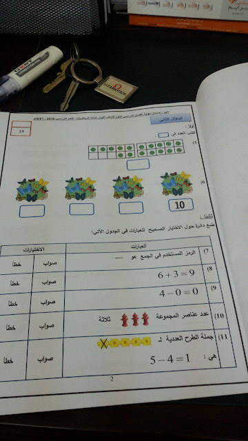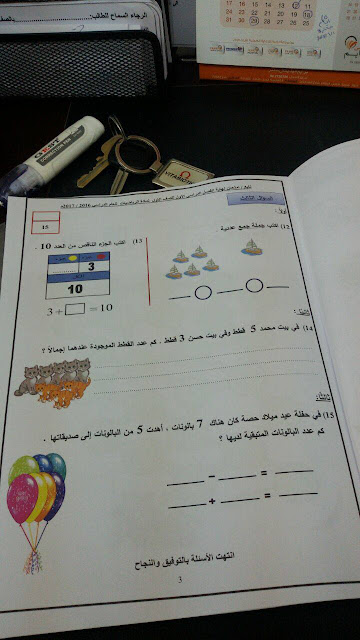 إليكم أسئلة امتحان مادة الرياضيات للصف الأول - الفصل الأول من العام الدراسي 2016-2017