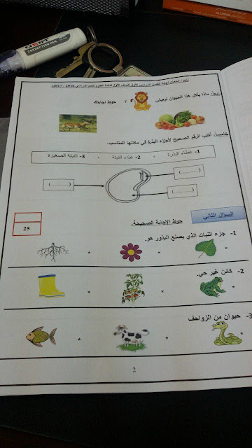 2. علوم, الفصل الأول, 2025-2026, نموذج أسئلة الاختبار التقويمي الأول