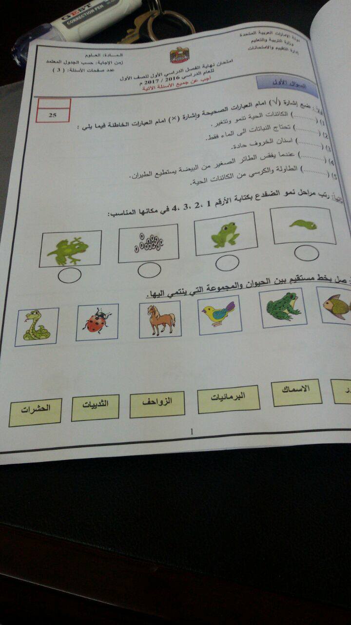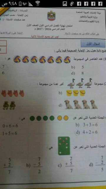 الصف الأول, الفصل الأول, رياضيات, أسئلة الامتحان الوزاري لامتحان نهاية الفصل الأول من العام الدراسي 2016-2017 وفق المنهاج الاماراتي الحديث