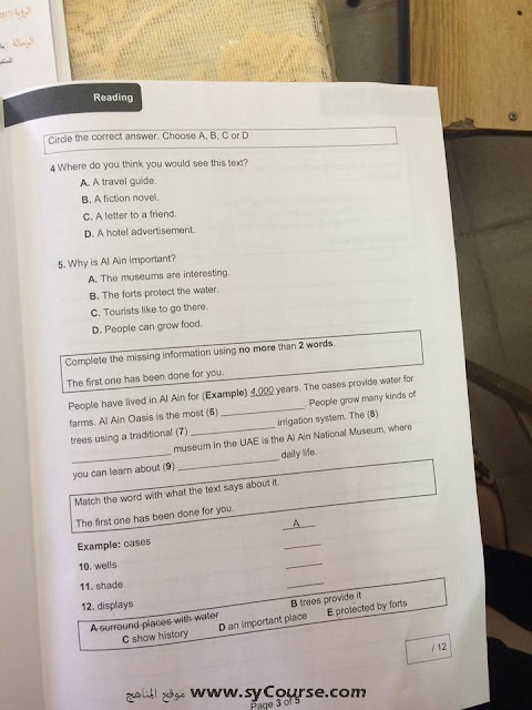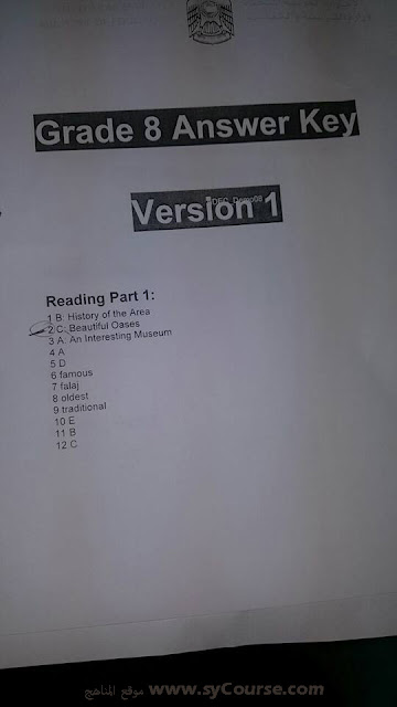 الصف الثامن, الفصل الأول, لغة انكليزية, نموذج إجابة أسئلة الامتحان الوزاري لامتحان نهاية الفصل الأول من العام الدراسي 2016-2017وفق المنهاج الاماراتي الحديث