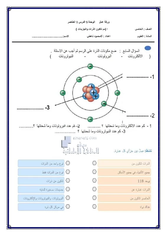 | أوراق عمل درس مما تتكون الذرات والجزيئات - إعداد: محمود ناهض | ||