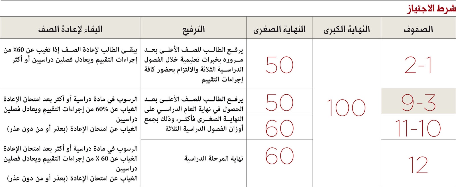 شروط نجاح ورسوب الطالب لجميع الصفوف | ||