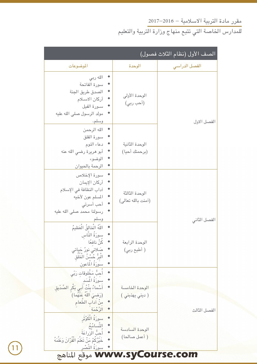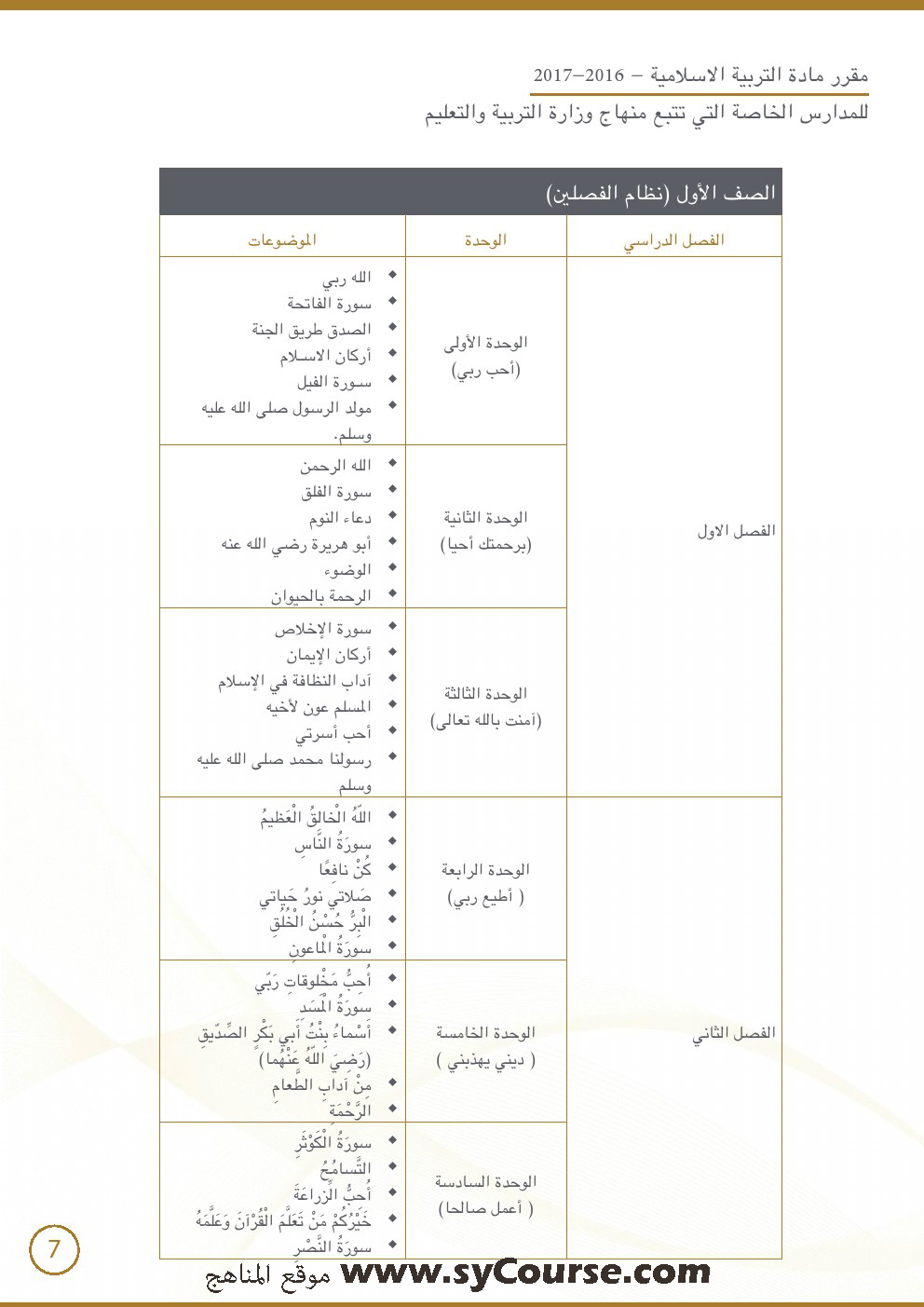 إليكم المقررات الدراسية للصف الأول (نظام الفصلين والثلاث فصول والأربع فصول) للمدارس التي يطبق بها منهاج وزارة التربية والتعليم العام وذلك للعام الدراسي 2016-2017