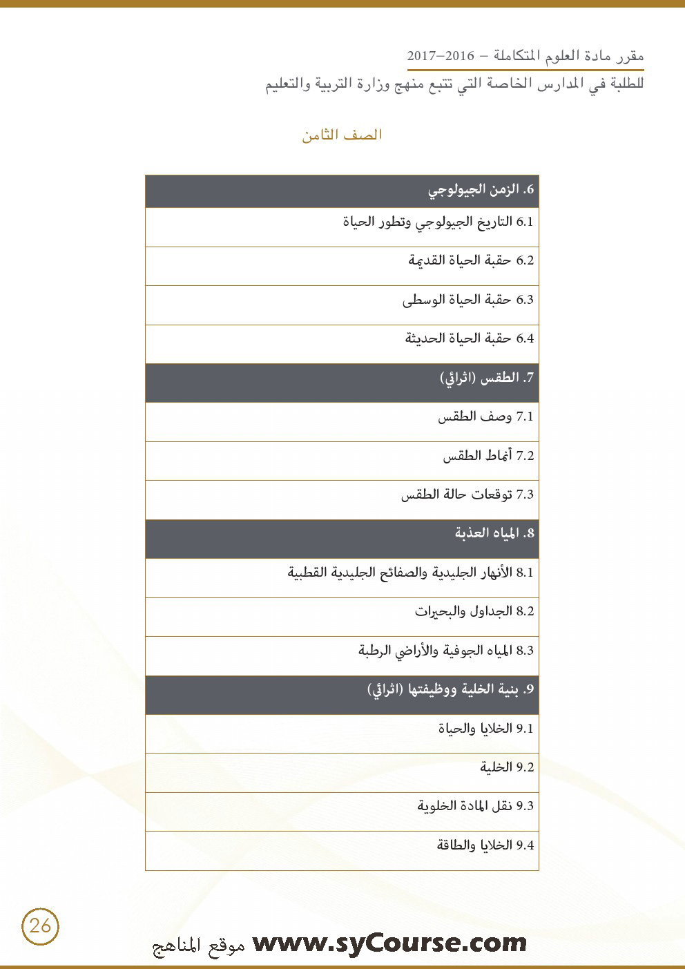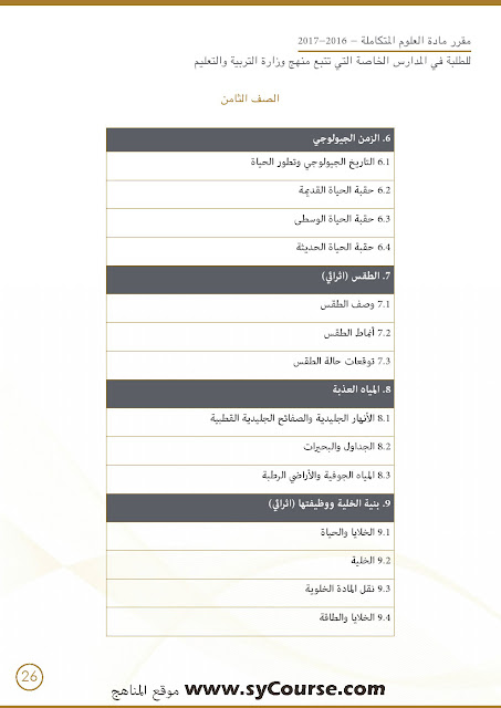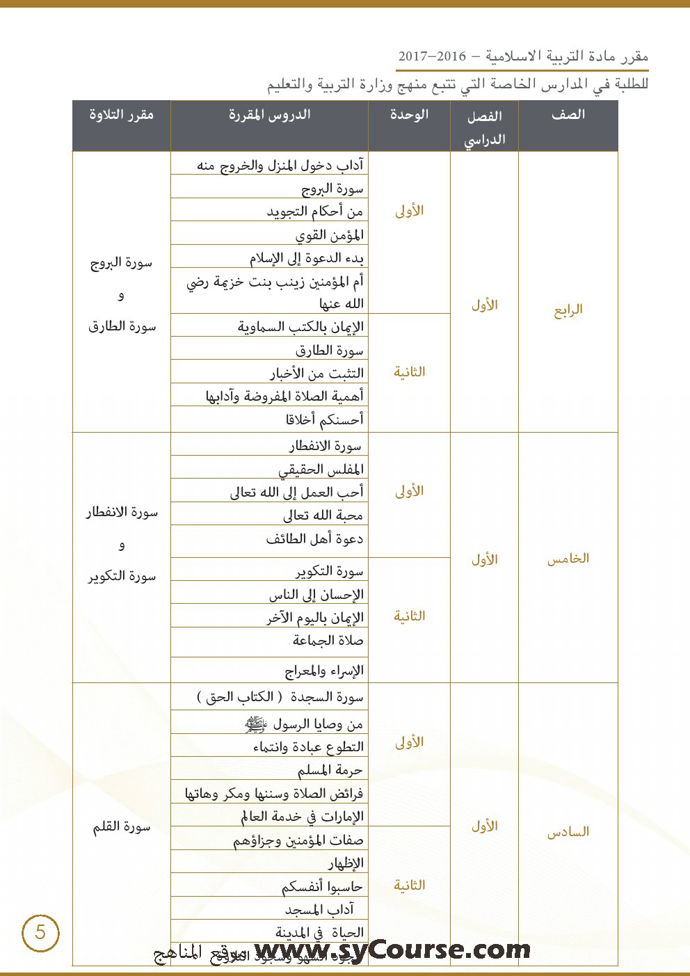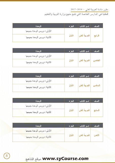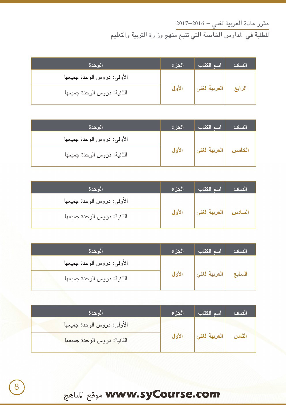 توزيع مقررات جميع المواد للصفوف من الرابع حتى الثامن | ||