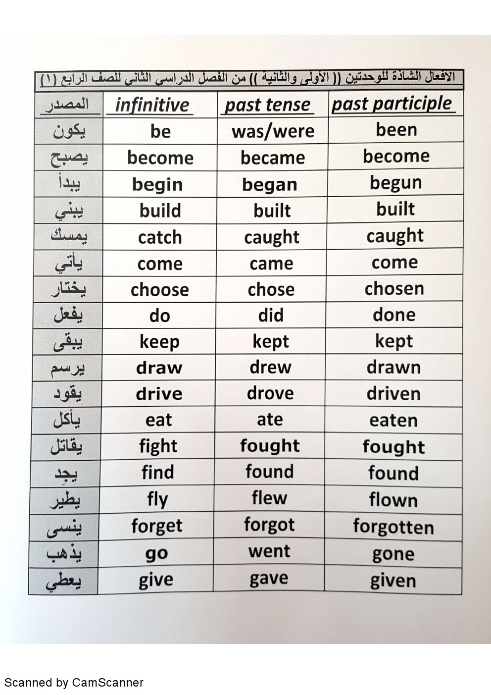 جميع الأفعال الشاذة للوحدتين الاولى والثانية | ||