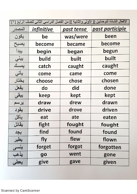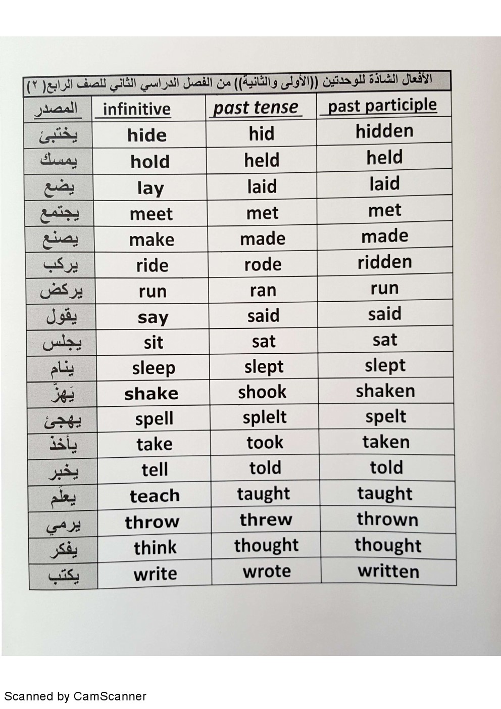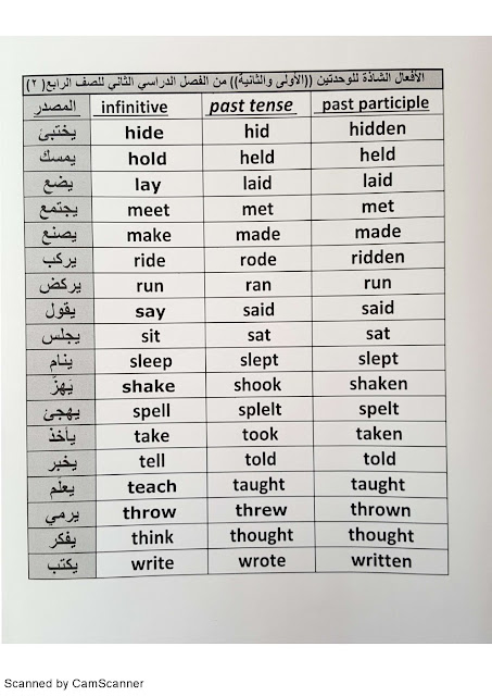 إليكم كامل الأفعال الشاذة في الوحدتين الاولى والثانية مجمّعة في صفحتين للصف الرابع- الفصل الثاني من العام الدراسي 2016-2017وفق المنهاج الاماراتي |