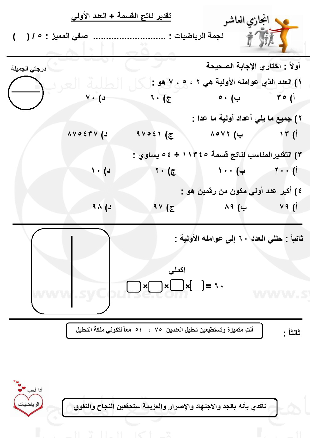 معلومات الملف: الصف الخامس, الفصل الأول, رياضيات, اختبارات مكونة من 16 صفحة - العام الدراسي 2016-2017 | ||