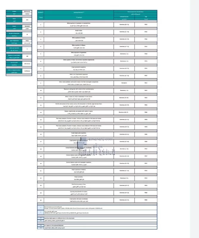 معلومات الملف: نرفق لكم ملف يتضمن مواصفات الامتحان النهائي للفصل الثاني من مادة الرياضيات للصف الحادي عشر المتقدم الفصل الدراسي الثاني للعام الدراسي 2021-2022 | ||