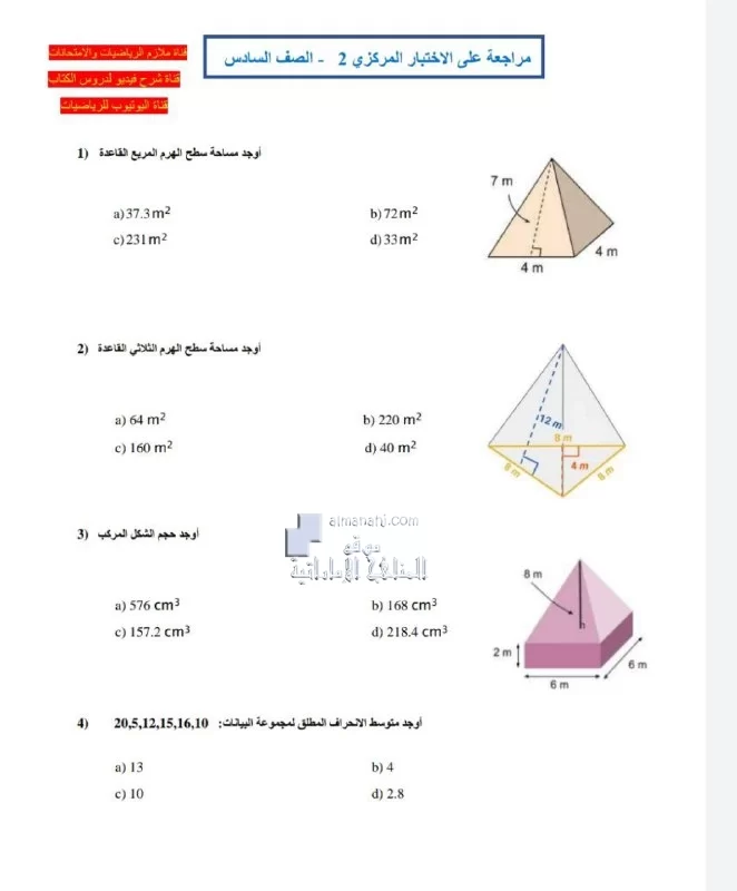 معلومات الملف: نرفق لكم ملف الذي يتضمن مراجعة على الاختبار المركزي باللغة العربية والانجليزية من مادة الرياضيات للصف السادس الفصل الدراسي الثالث للعام الدراسي 2021-2022 | ||