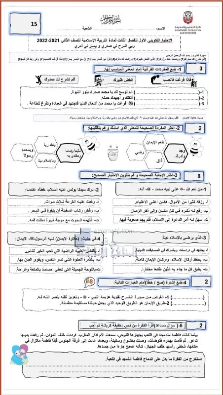 معلومات الملف: نرفق لكم ملف يتضمن الاختبار التكويني الأول الفصل الثالث من مادة تربية اسلامية للصف الثاني الفصل الدراسي الثالث للعام الدراسي 2021-2022 | ||