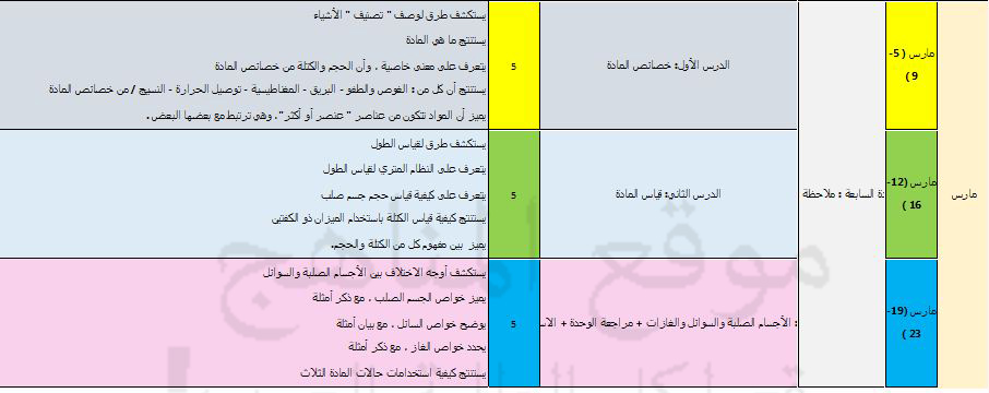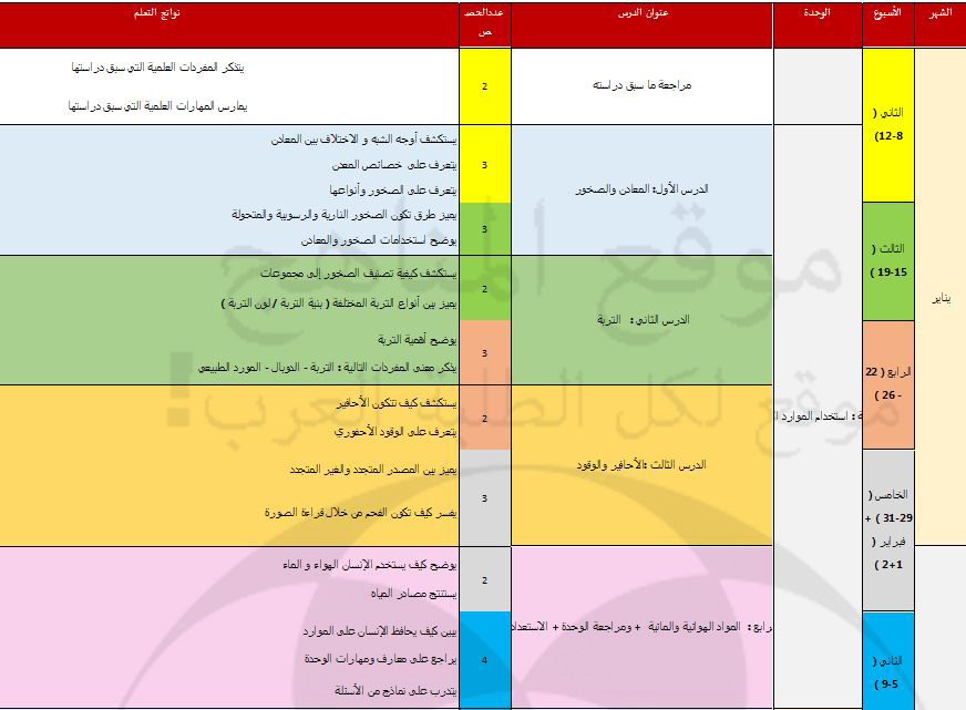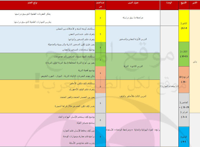 إليكم الخطة الفصلية لمادة العلوم للصف الثالث وذلك وفق المنهاج الامارتي 2017