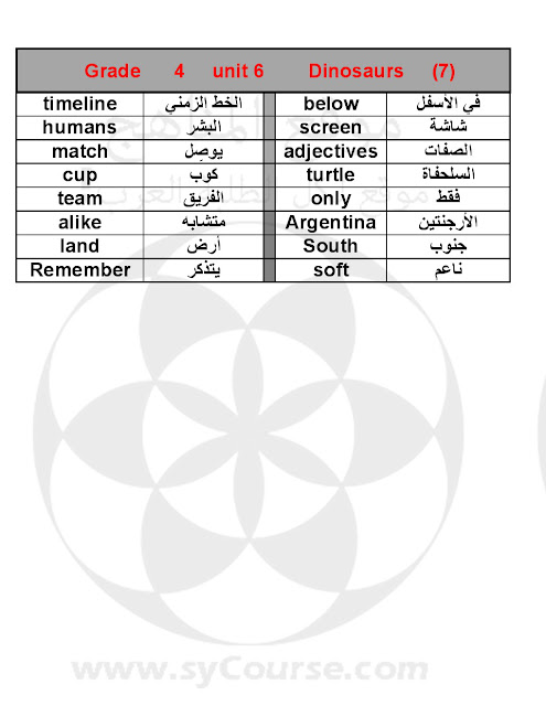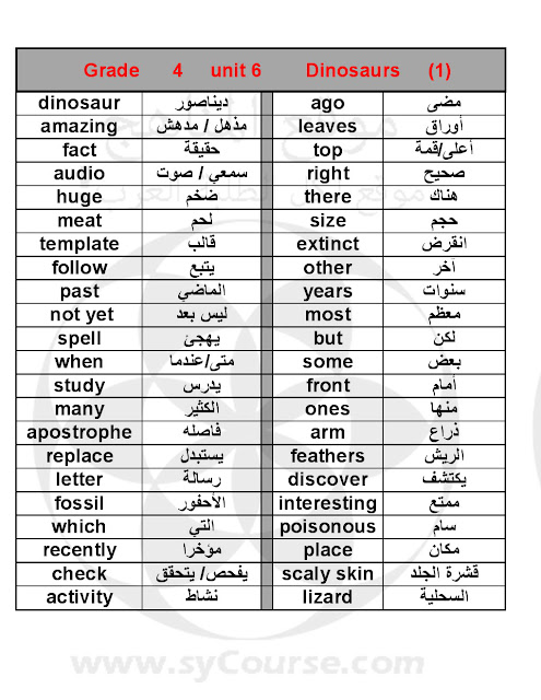 مفردات وحدة الديناصورات مع الترجمة 2017 | ||
