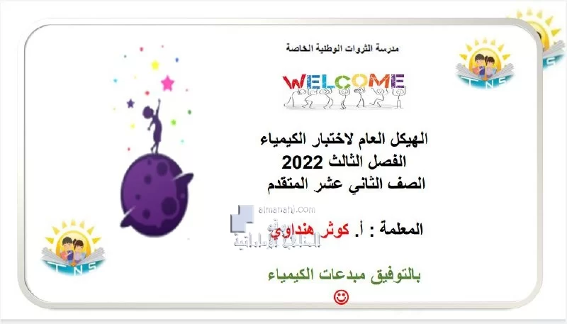 معلومات الملف: نرفق لكم ملف يتضمن أسئلة هيكل امتحان وزاري الفصل الثالث من مادة الكيمياء للصف الثاني عشر المتقدم الفصل الدراسي الثالث للعام الدراسي 2021-2022 | ||
