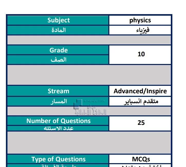 معلومات الملف: نرفق لكم ملف يتضمننموذجهيكل الوزارة امتحان نهاية الفصل الثالث من مادة الفيزياء للصف العاشر المتقدم الفصل الدراسي الثالث للعام الدراسي 2021-2022 | ||