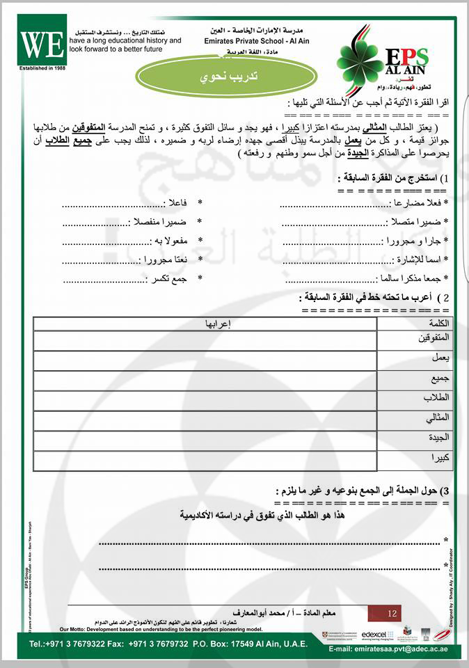 | أهلاً بكم جميعاً طلاباً ومدرسين وأهالي طلبة ومهتمين، في قسم دولة الإمارات ، نحن الآن في الفصل الأول من العام الدراسي 2025/2026 وتاريخ اليوم 2025/11/16 م | |