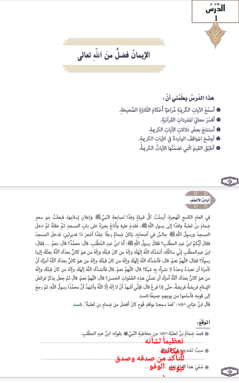 الصف التاسع, الفصل الثاني, تربية اسلامية, حلول الدرس الأول 2017 الإيمان من فضل الله تعالى