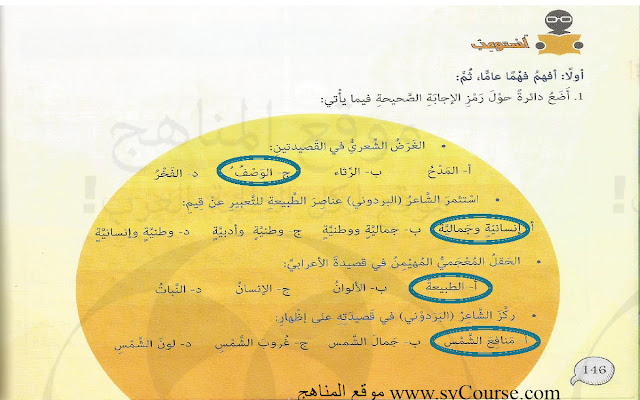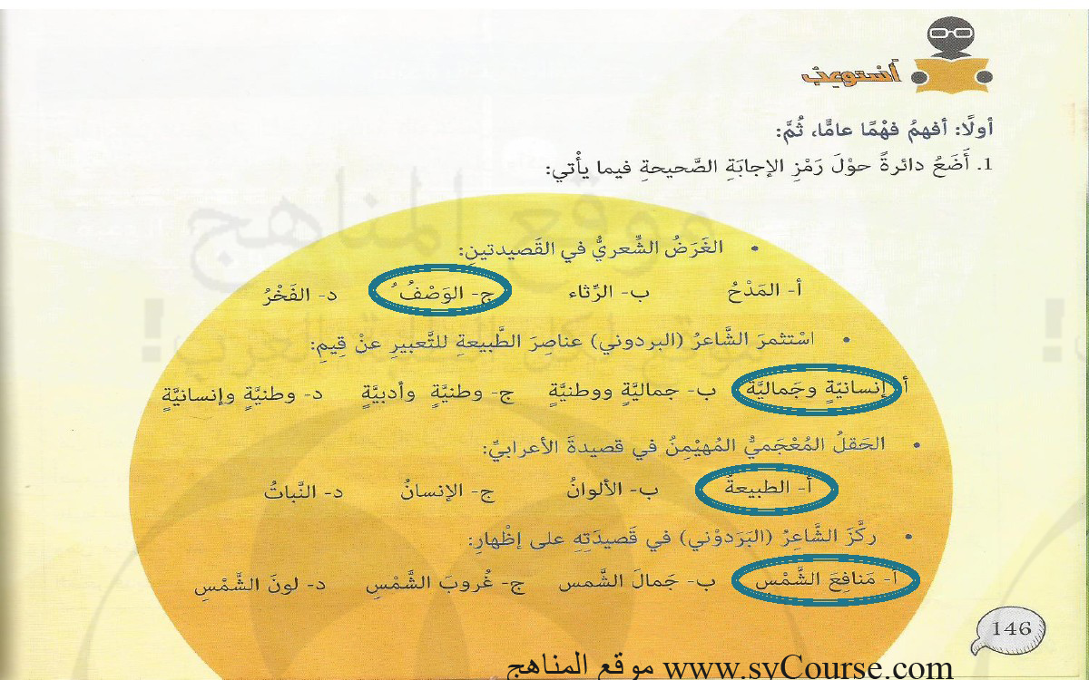 حلول الوحدة الثالثة (مناظرة بين الشمس والقمر ) | ||