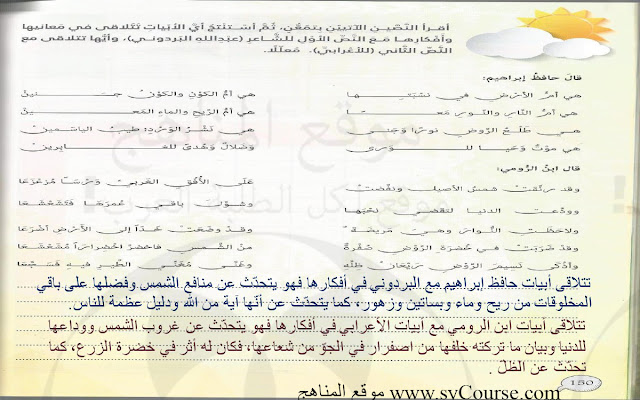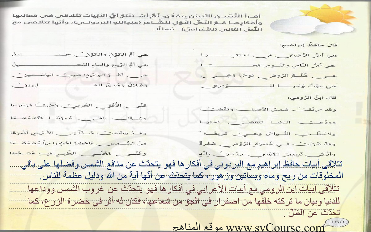 إليكم حلول لكتاب اللغة العربية للصف الخامس -الفصل الثاني من الصفحة 144 حتى الصفحة 151 : الوحدة الثالثة (مناظرة بين الشمس والقمر): الدرس الاول (النص الشعري: قصيدة الشمس) |