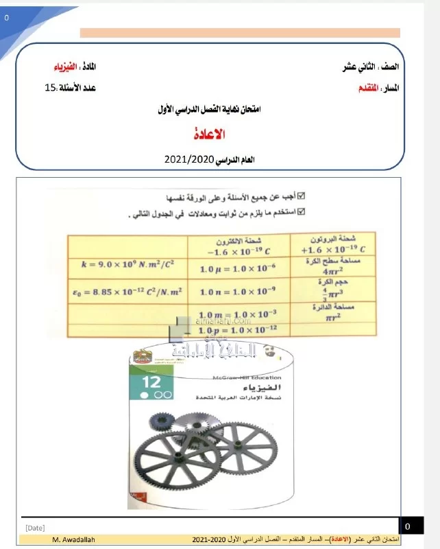 معلومات الملف: نرفق لكم ملف يتضمن أسئلة امتحان الإعادة نهاية الفصل الأول بدون حل من مادة الفيزياء للصف الثاني عشر المتقدم الفصل الدراسي الأوا للعام الدراسي 2021-2020 | ||