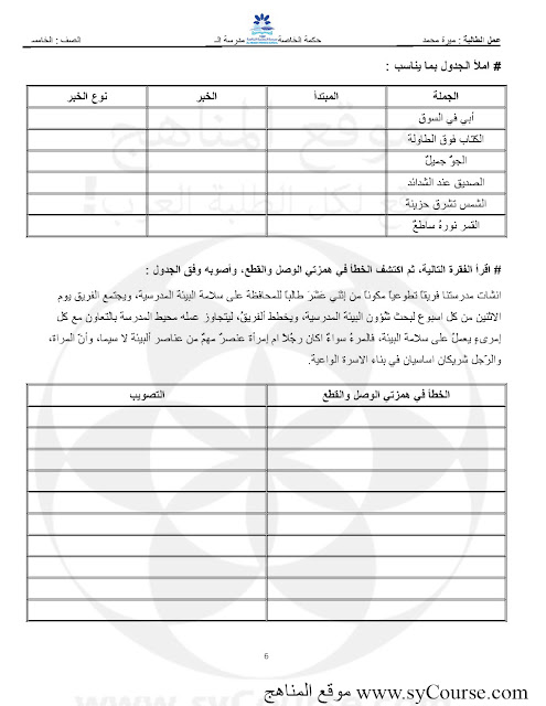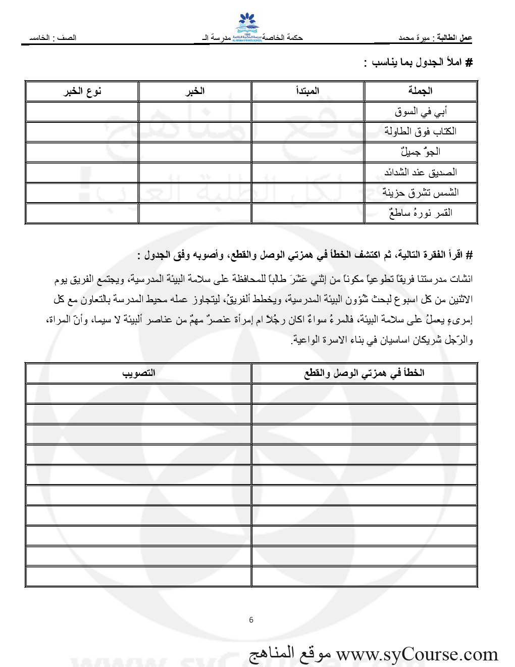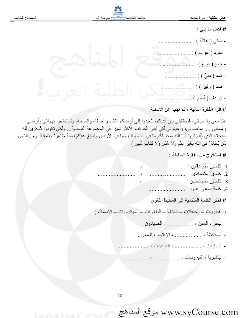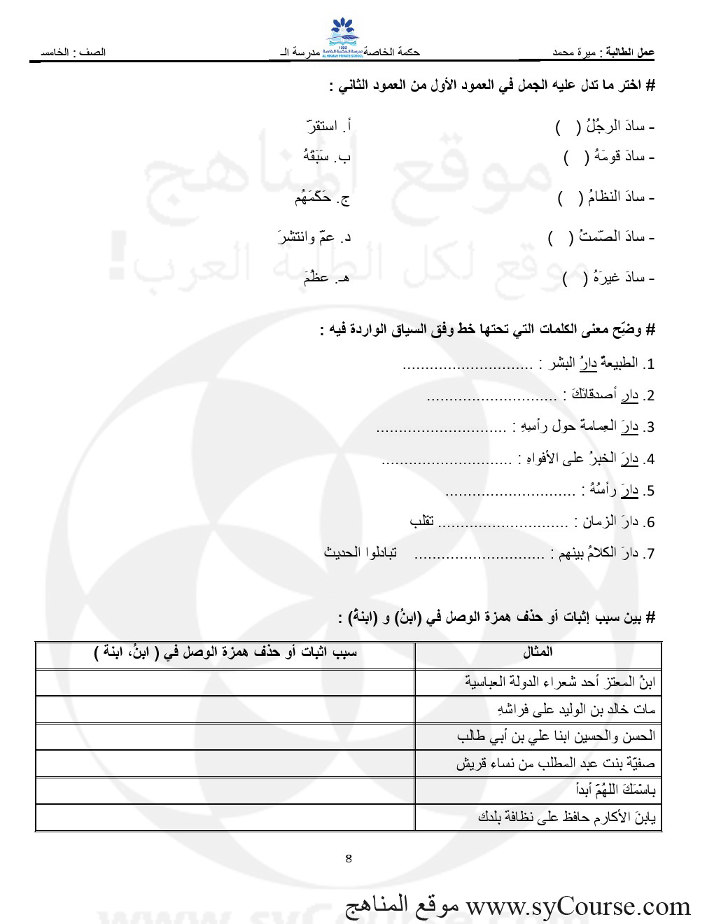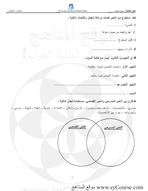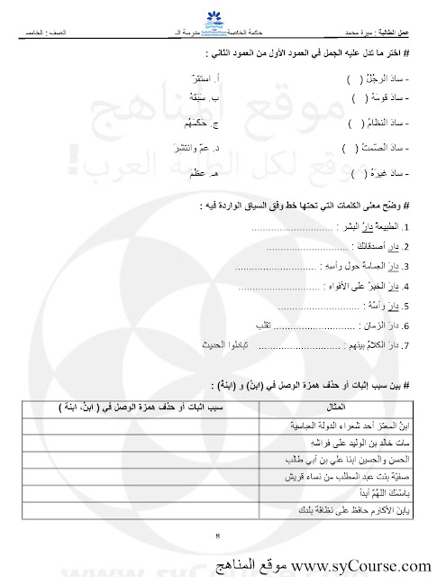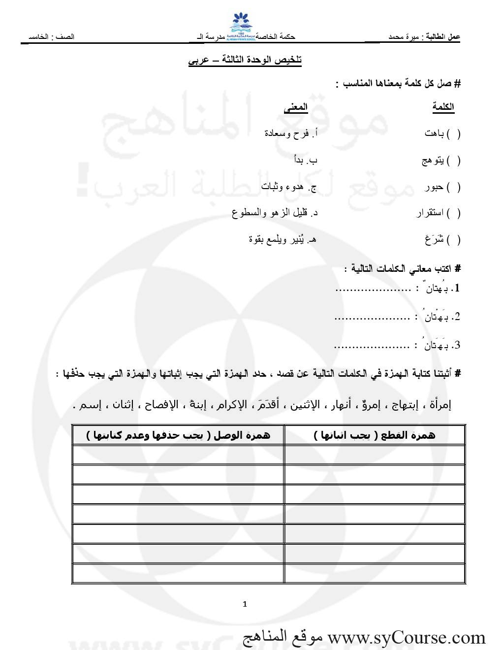 معلومات الملف: الصف الخامس, الفصل الثاني, لغة عربية, أوراق عمل شاملة للوحدة الثالثة | ||