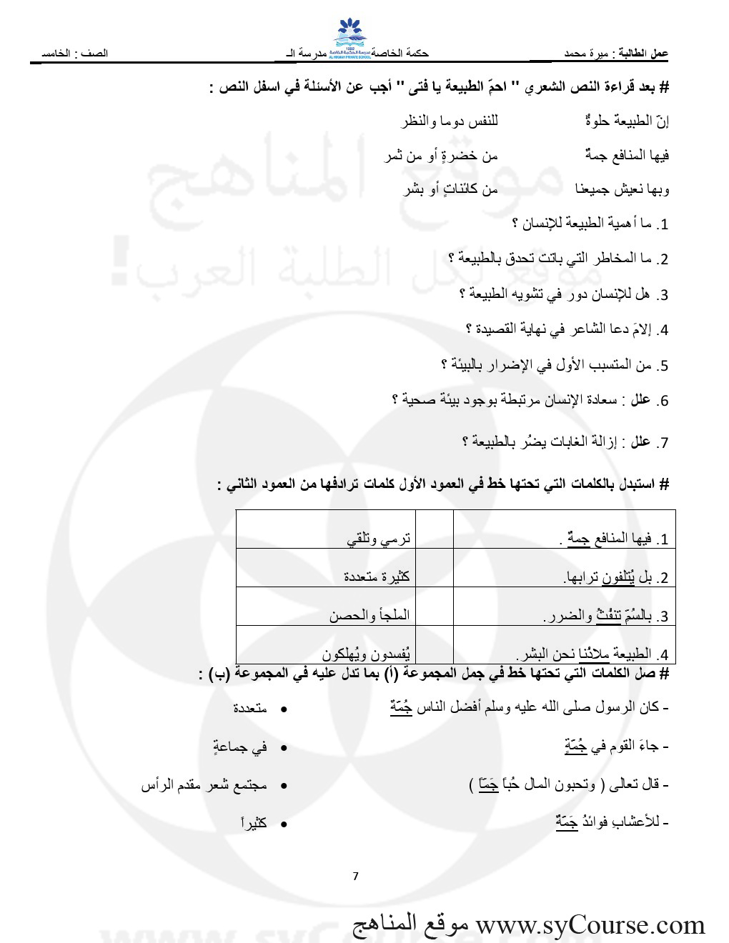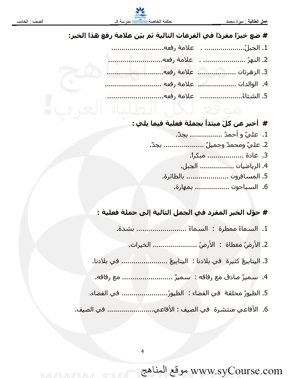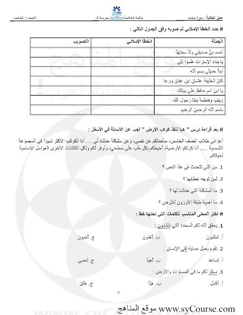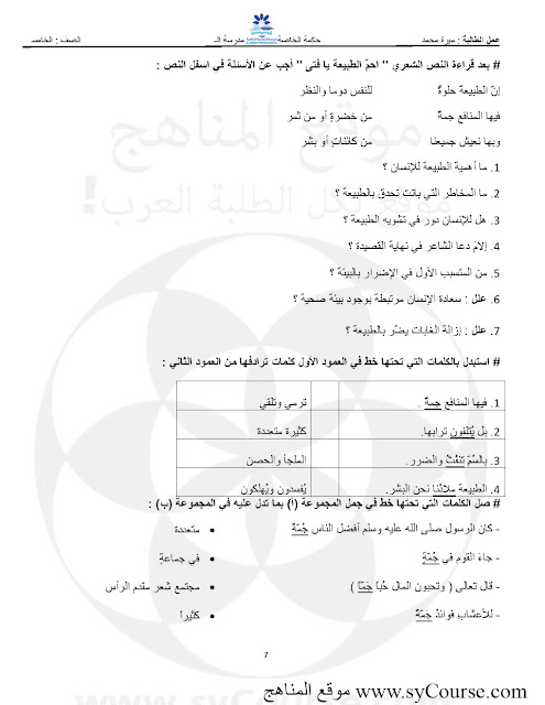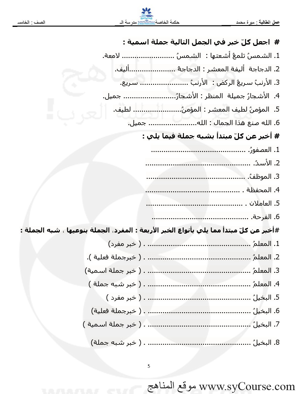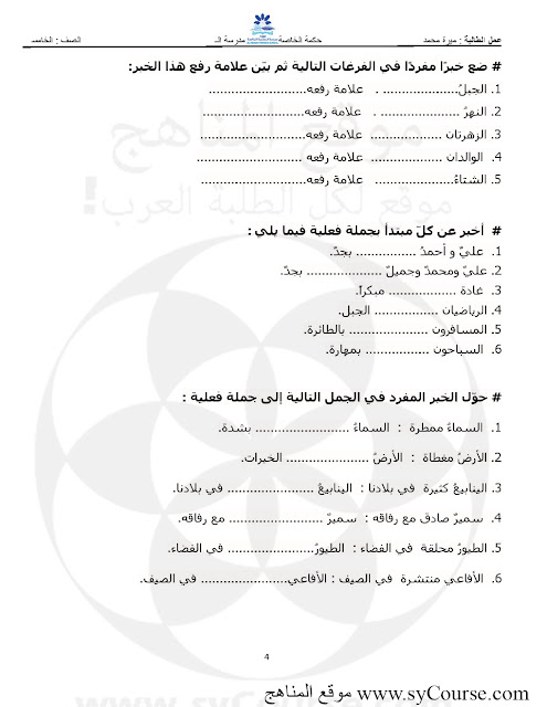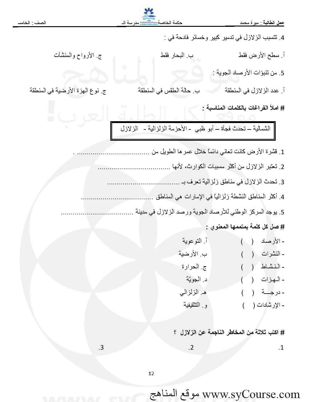 معلومات الملف: الصف الخامس, الفصل الثاني, لغة عربية, أوراق عمل شاملة للوحدة الثالثة | ||