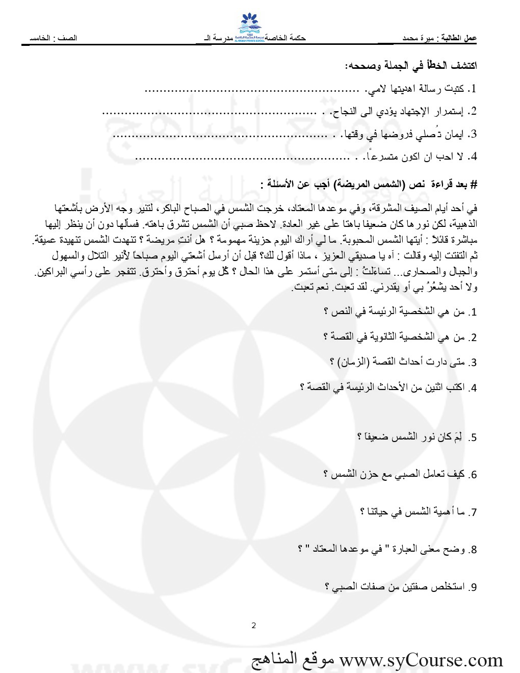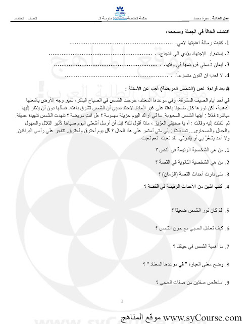 أحدث ملفات الصف الخامس, لغة انكليزية, الفصل الثاني |