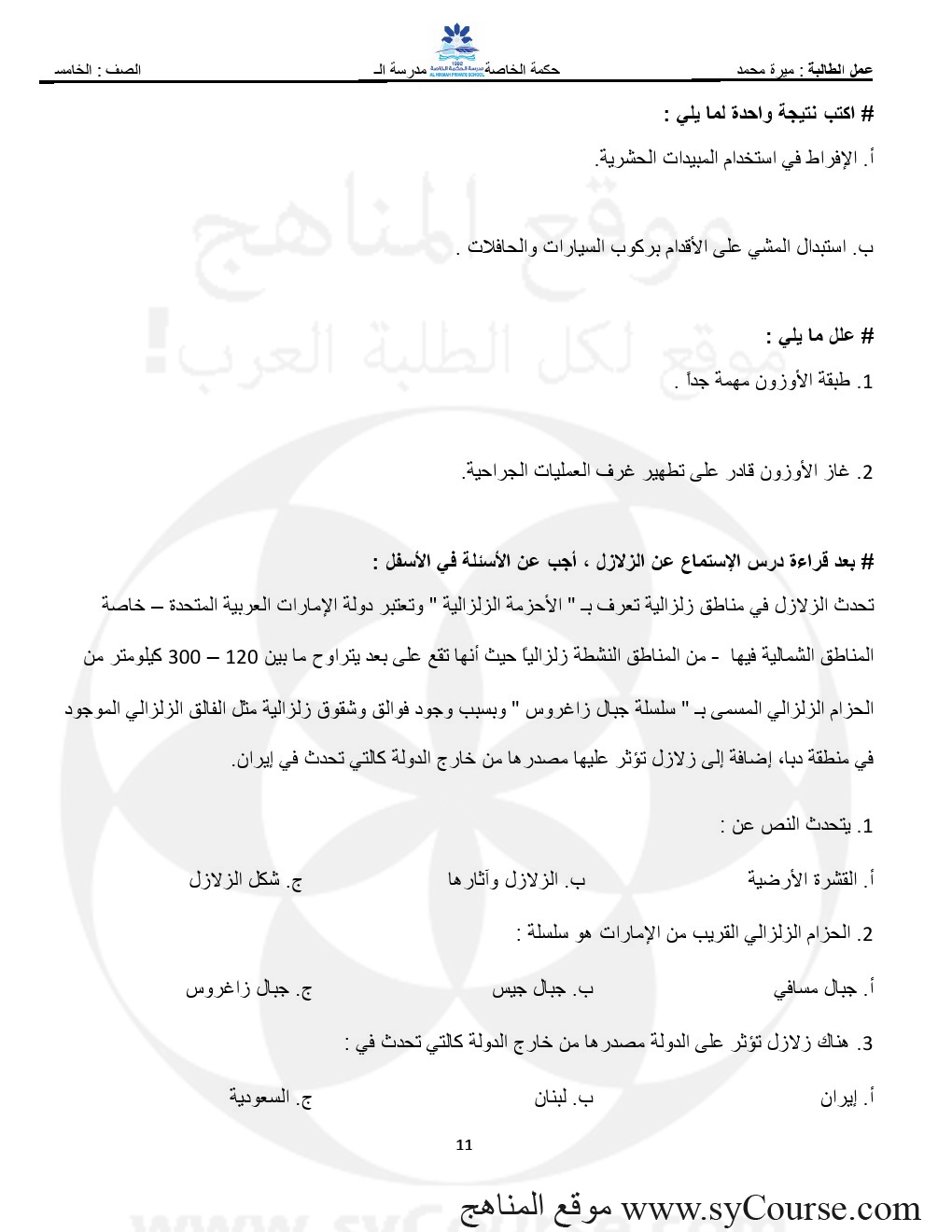 | هل تريد ملفات لمادة أخرى لقسم الصف الخامس, الفصل الثاني ؟ اخترها |