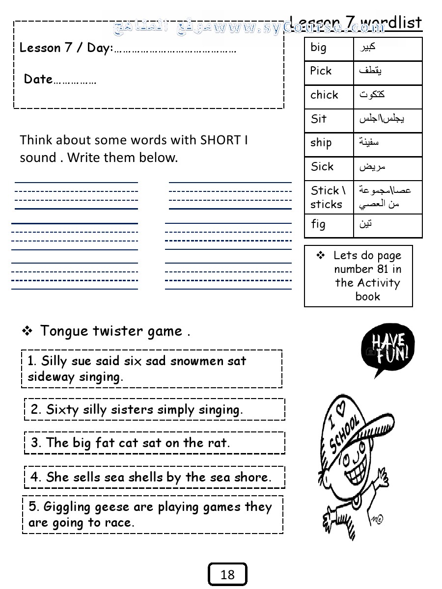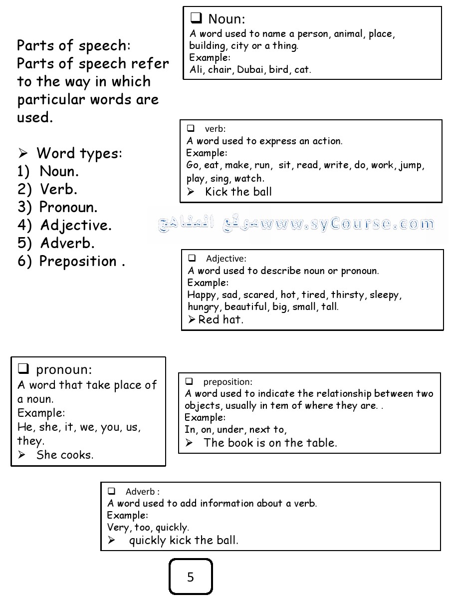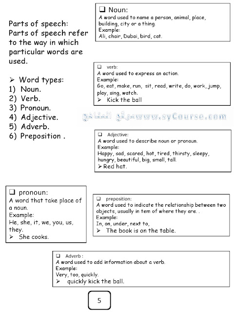 1. أوراق عمل كتابة Nouns in unit 5 الأسماء في الوحدة الخامسة