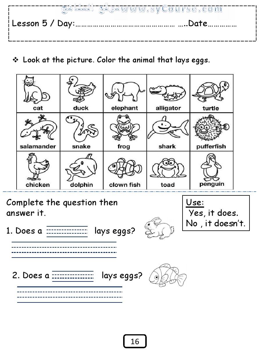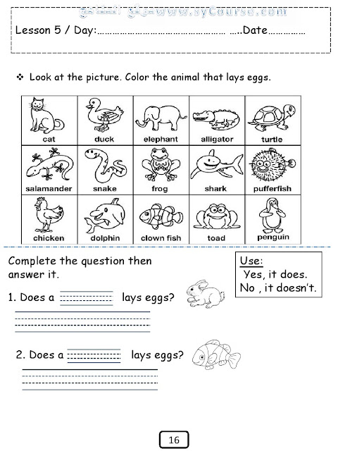 الصف الثاني, الفصل الثاني, لغة انكليزية, جميع أوراق عمل الوحدة الخامسة