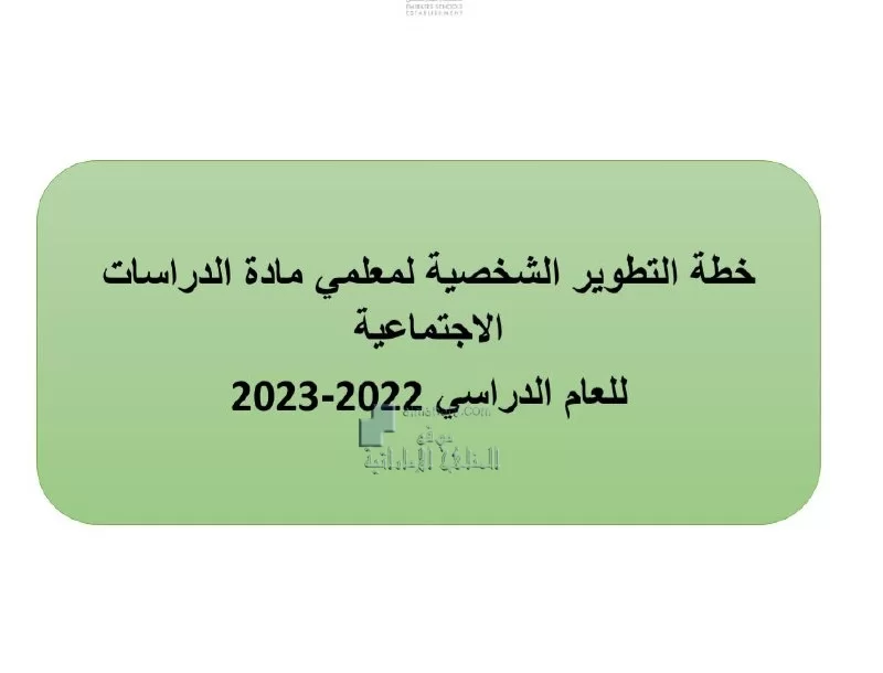 معلومات الملف: نرفق لكم ملف يتضمن خطة التطوير الشخصية لمعلمي مادة الدراسات الإجتماعية الفصل الأول للعام 2022-2023