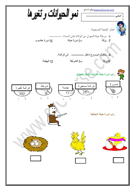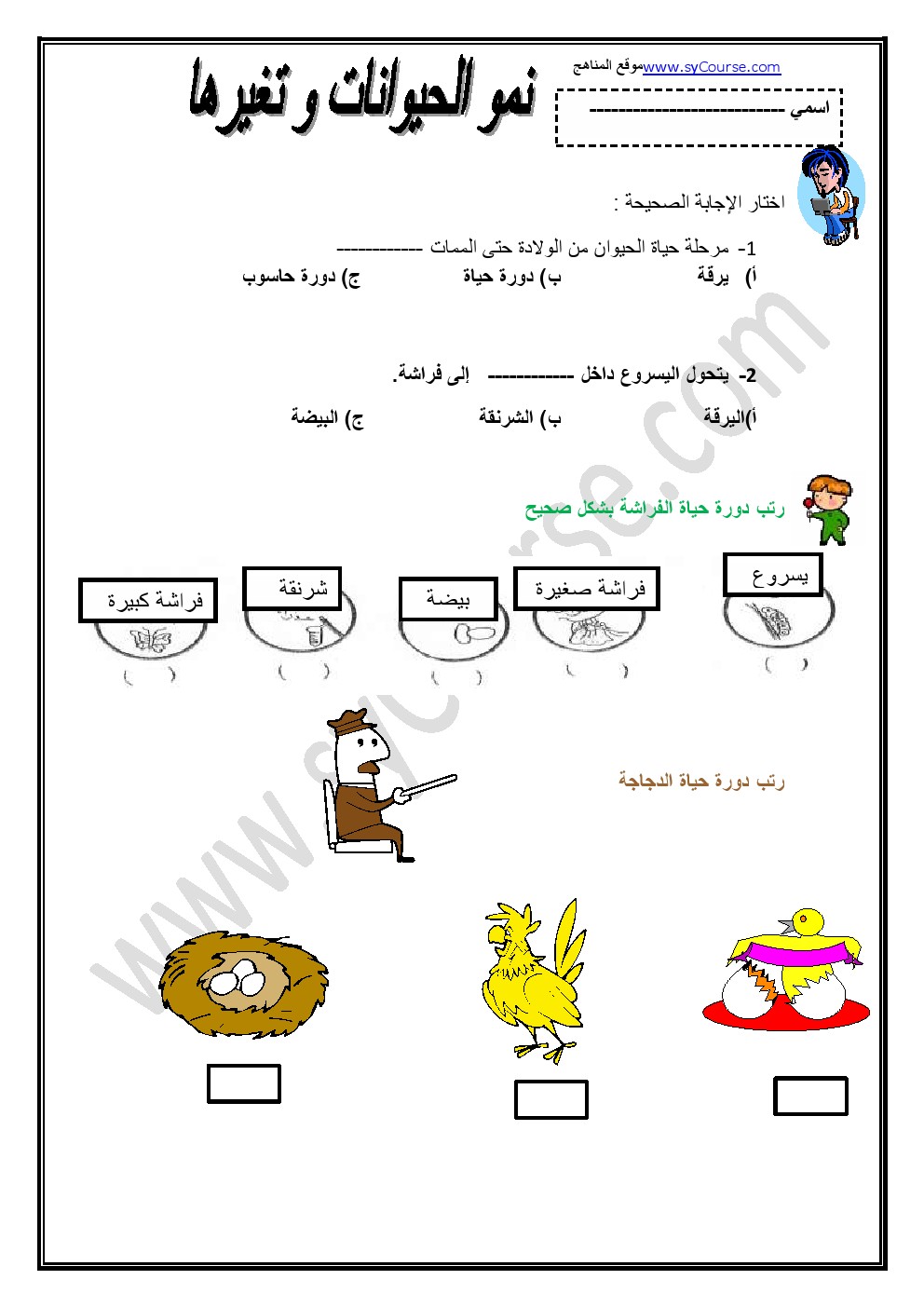 ورقة عمل حول نمو الحيوانات وتطورها | ||