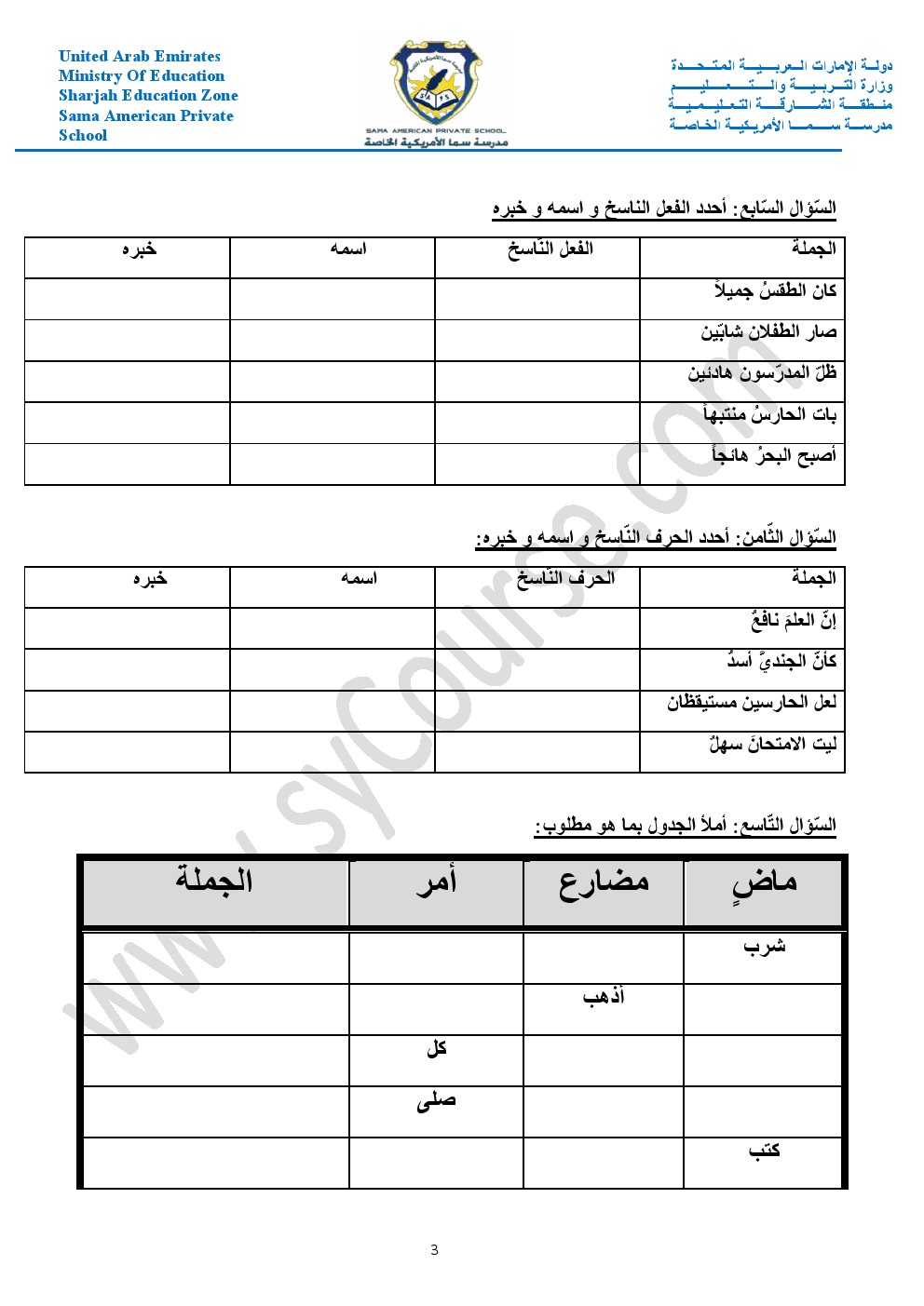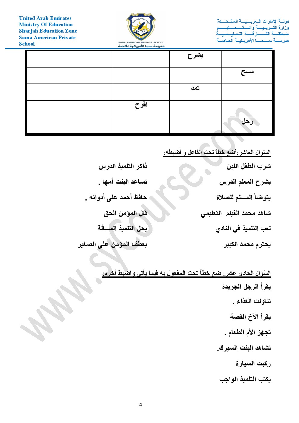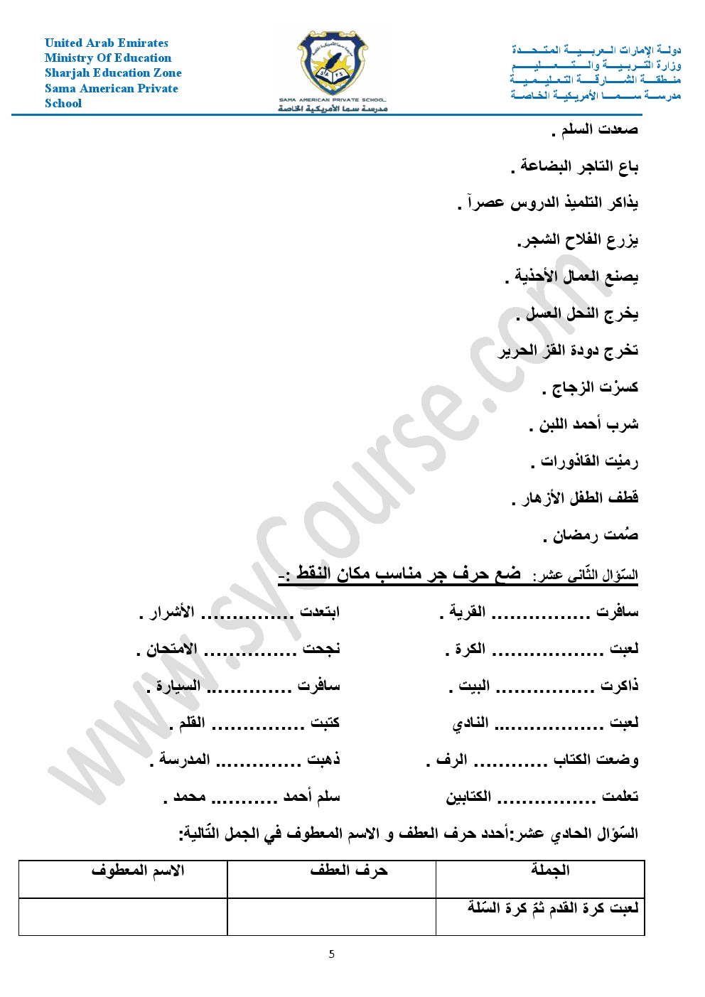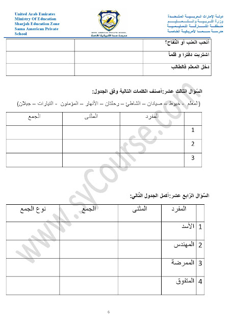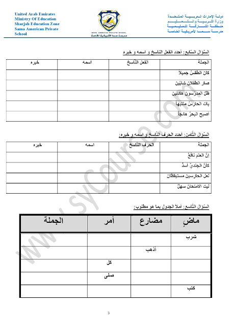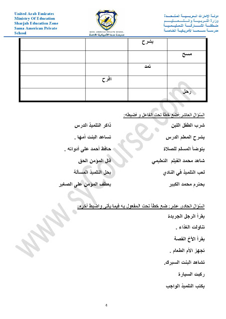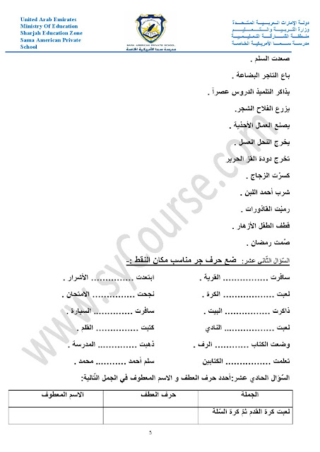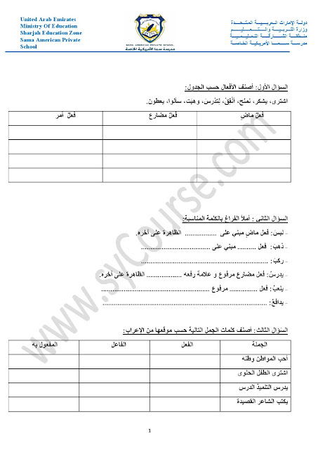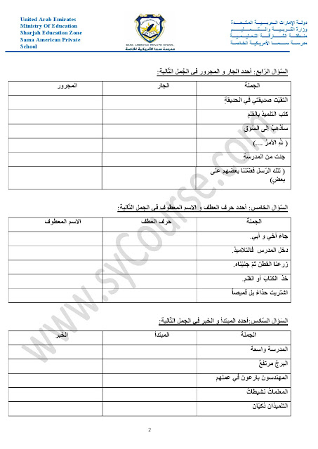 أوراق عمل حول الأفعال والجار والمجرور والعطف والمبتدأ والخبر والفعل الناسخ والفاعل وأحرف الجر والمفرد والمثنى والجمع والضمائر وإعراب الفعل | ||