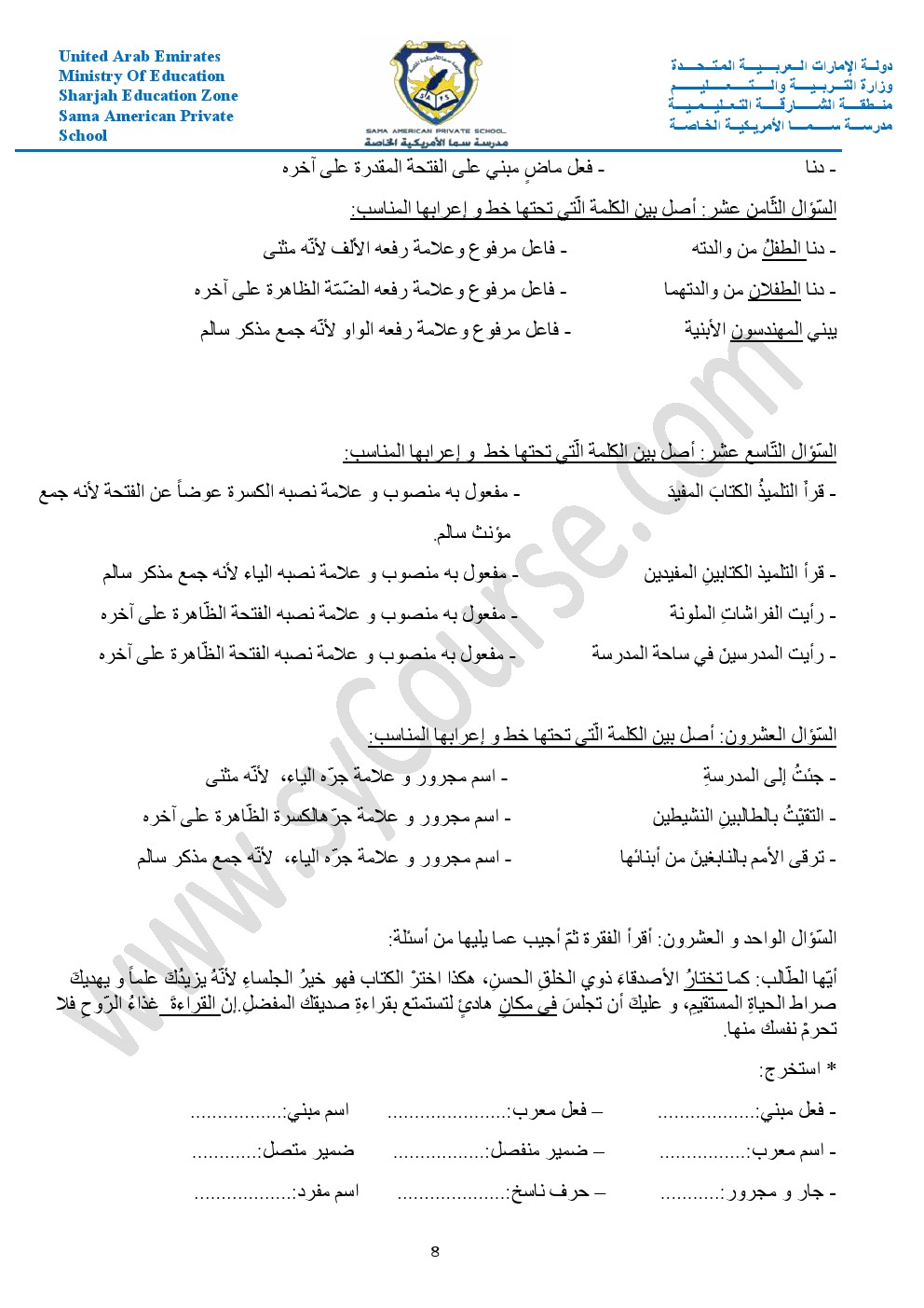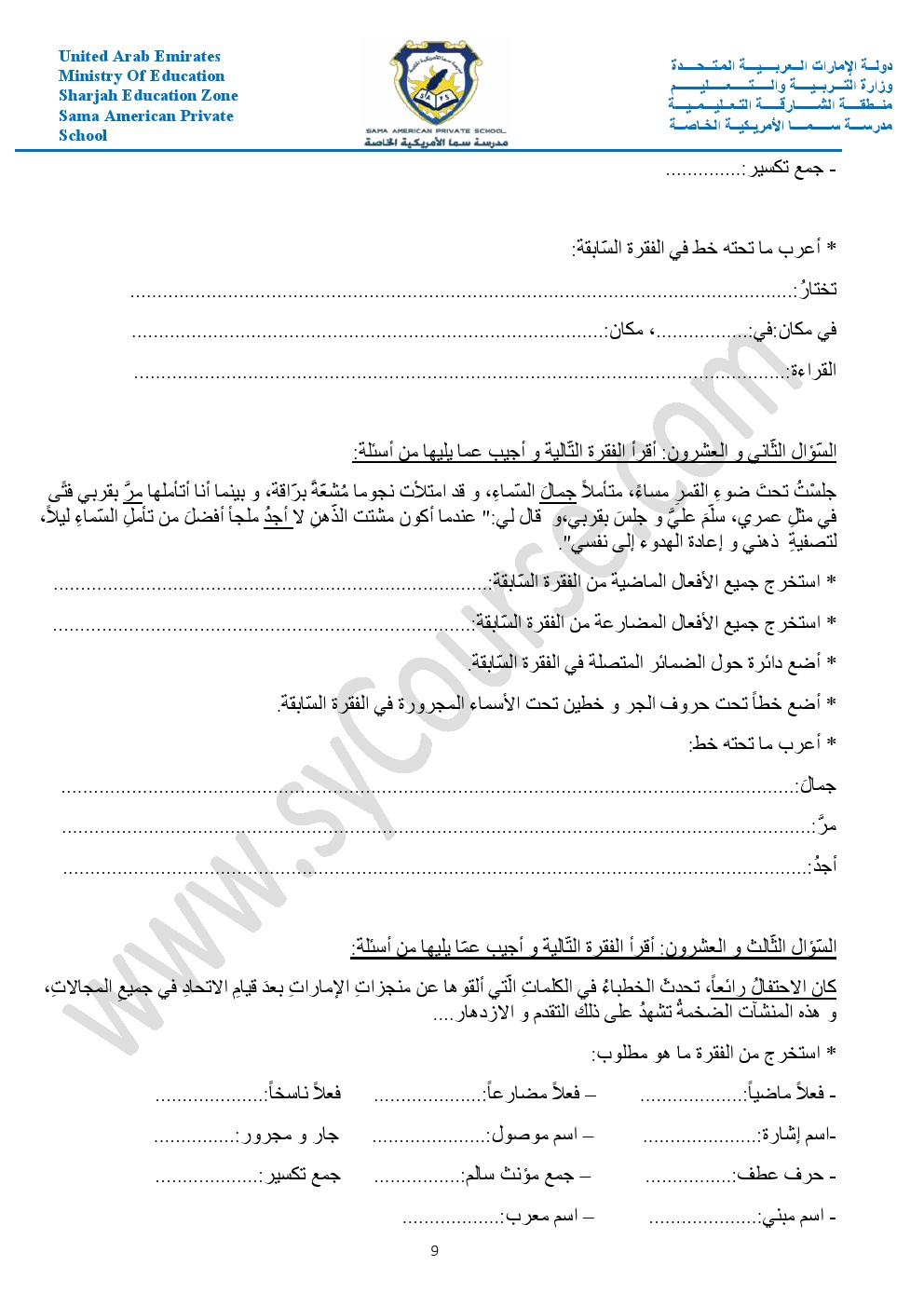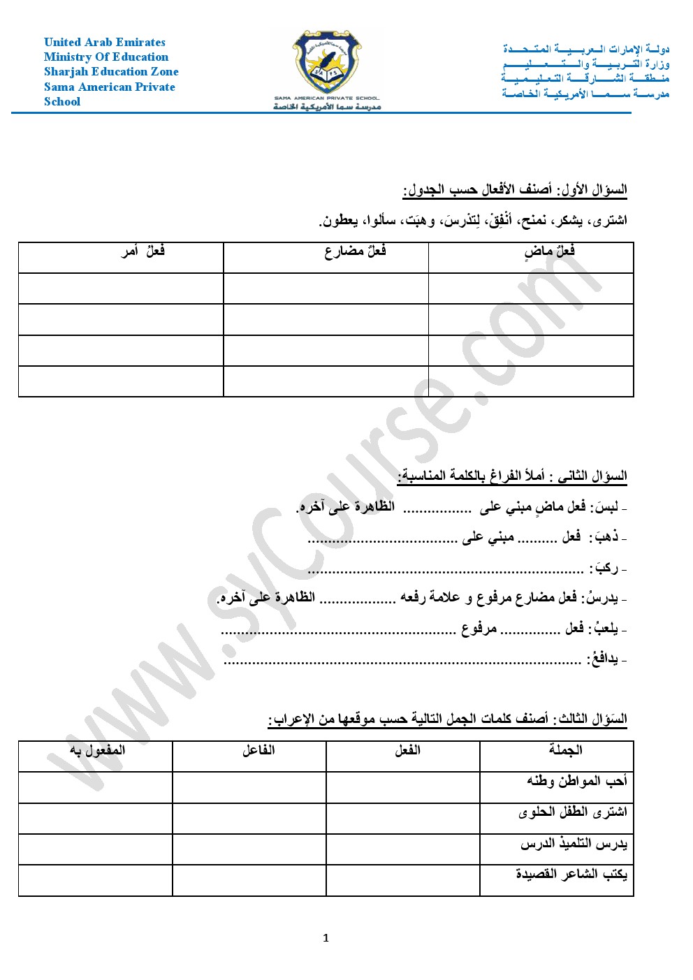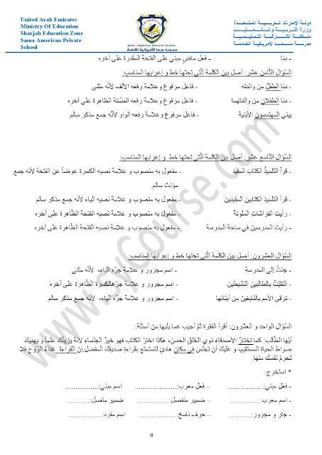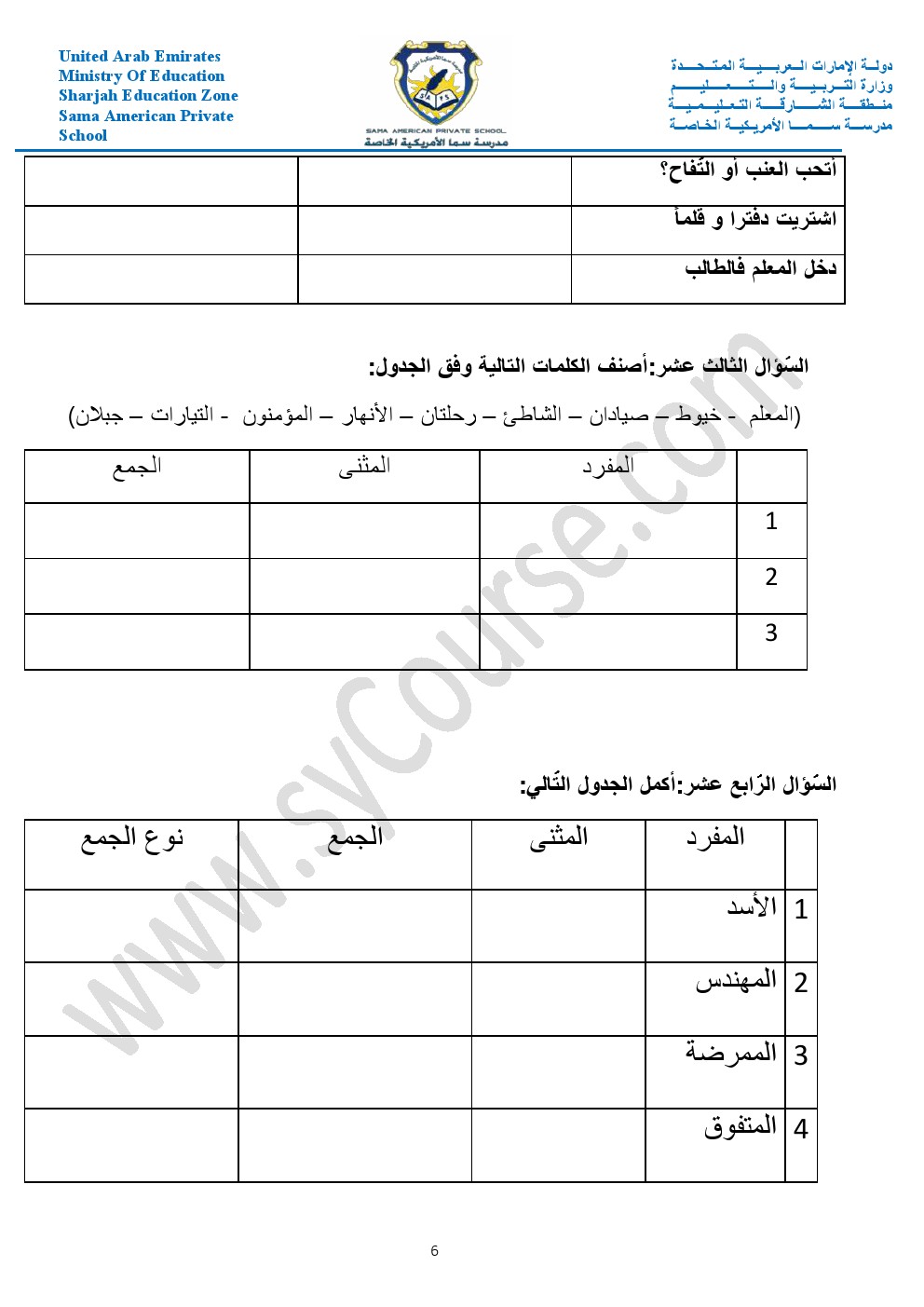 أوراق عمل حول الأفعال والجار والمجرور والعطف والمبتدأ والخبر والفعل الناسخ والفاعل وأحرف الجر والمفرد والمثنى والجمع والضمائر وإعراب الفعل | ||