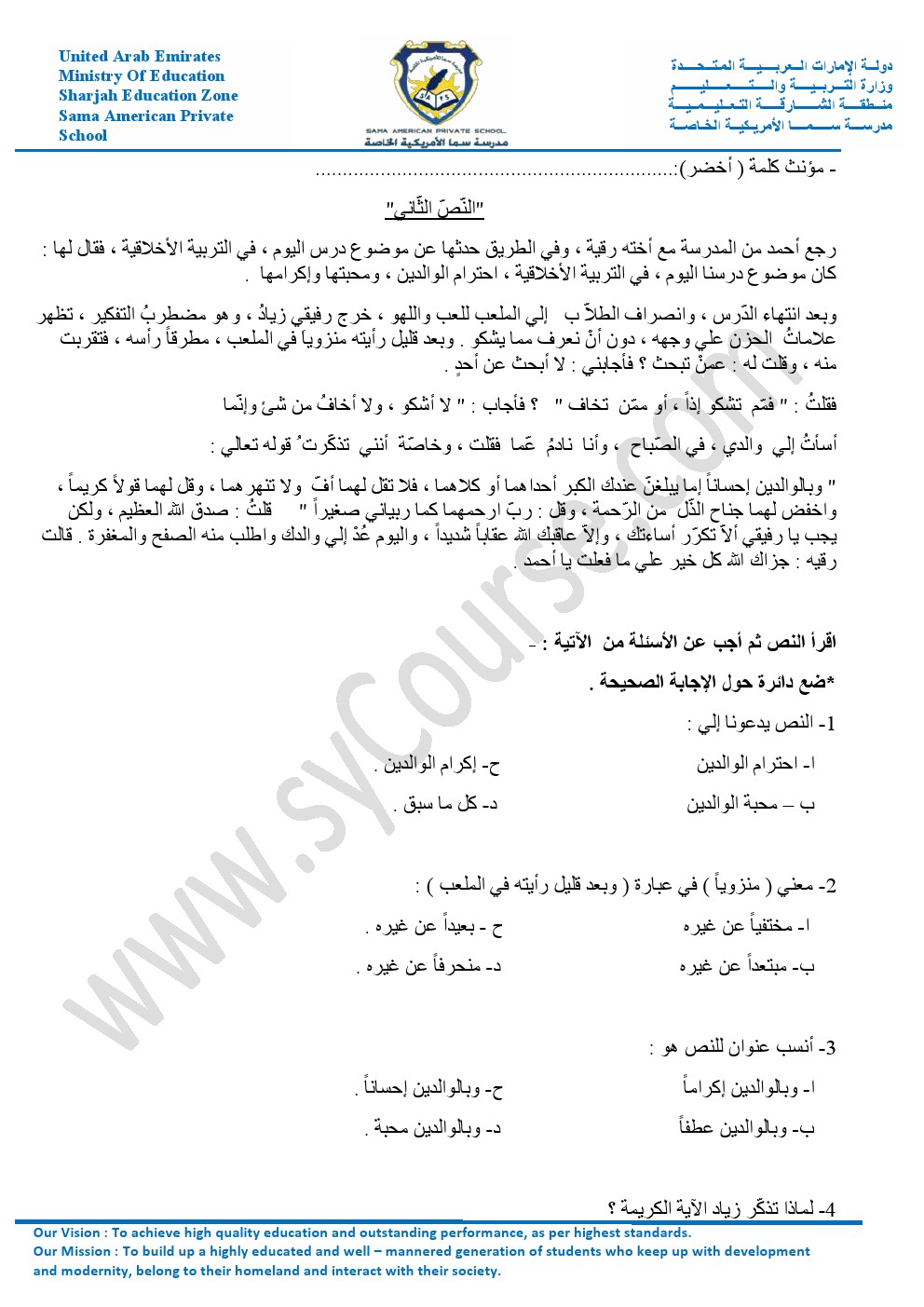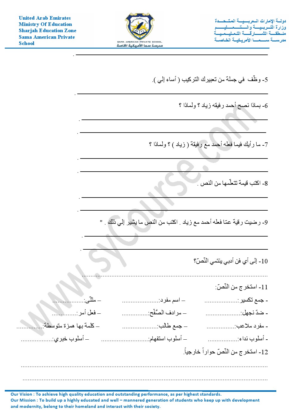 أنت هنا: موقع المناهج ⇦ المناهج الإماراتية ⇦ الصف الرابع ⇦ لغة عربية ⇦ الفصل الثاني ⇦ أوراق عمل |