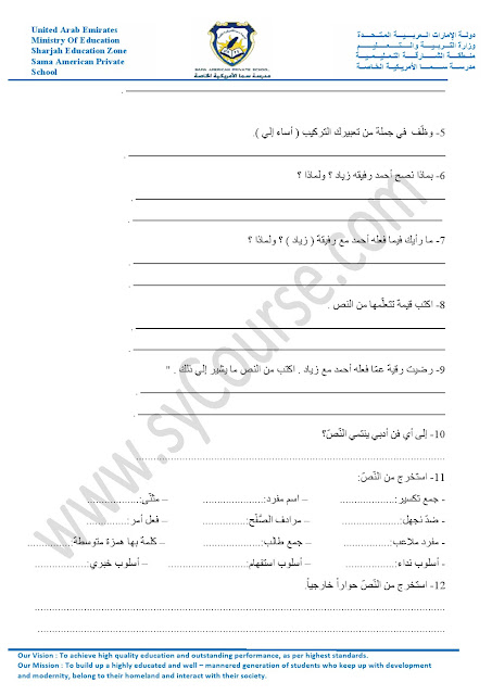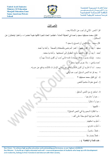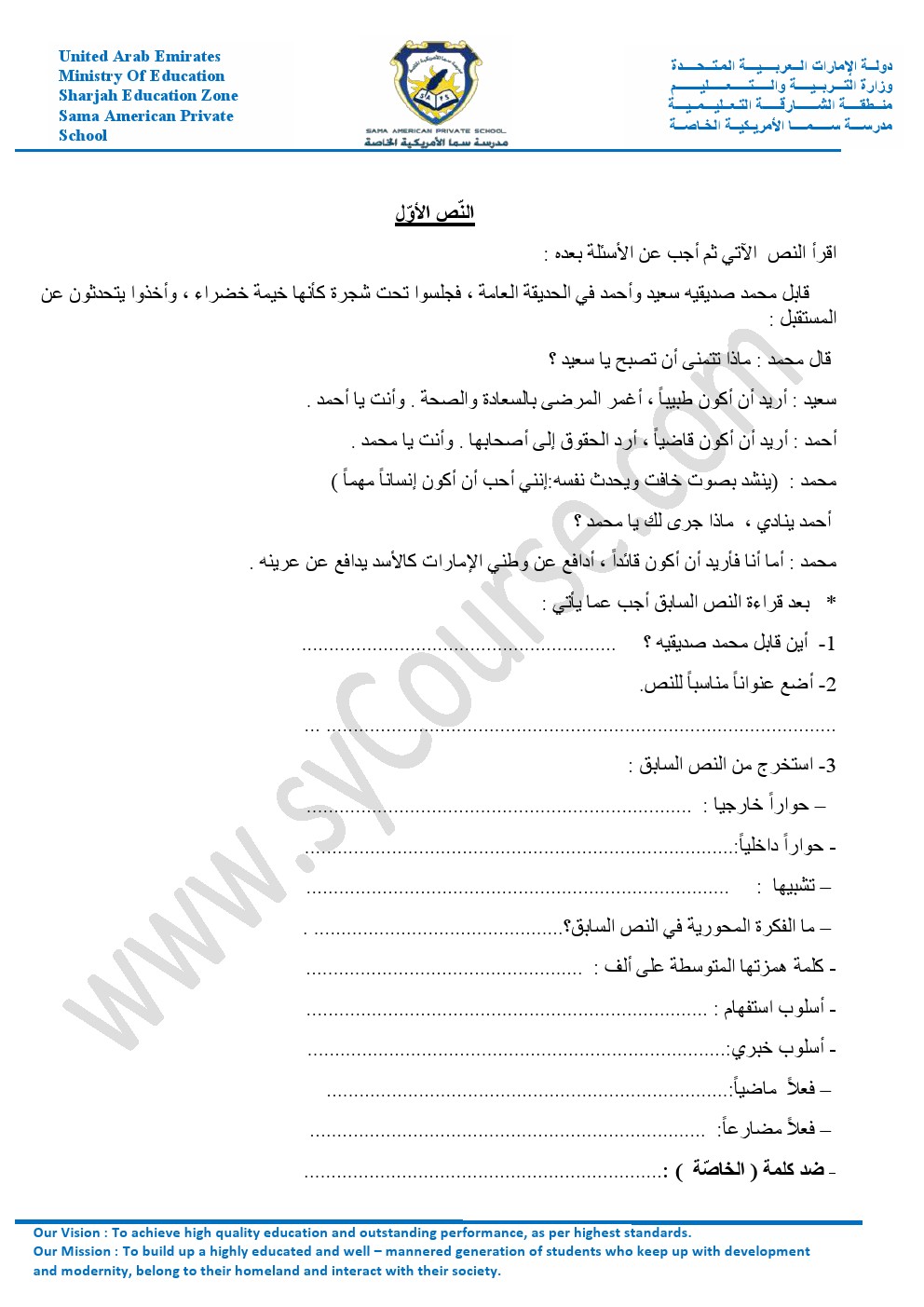 إليكم اوراق عمل لثلاثة نصوص و5 مواضيع تعبير في مادة اللغة العربية للصف الرابع- الفصل الثاني : لتحميل الملف اضغط على الرابط التالي من فضلك: http://sycourse.com/up/do.php?id=62