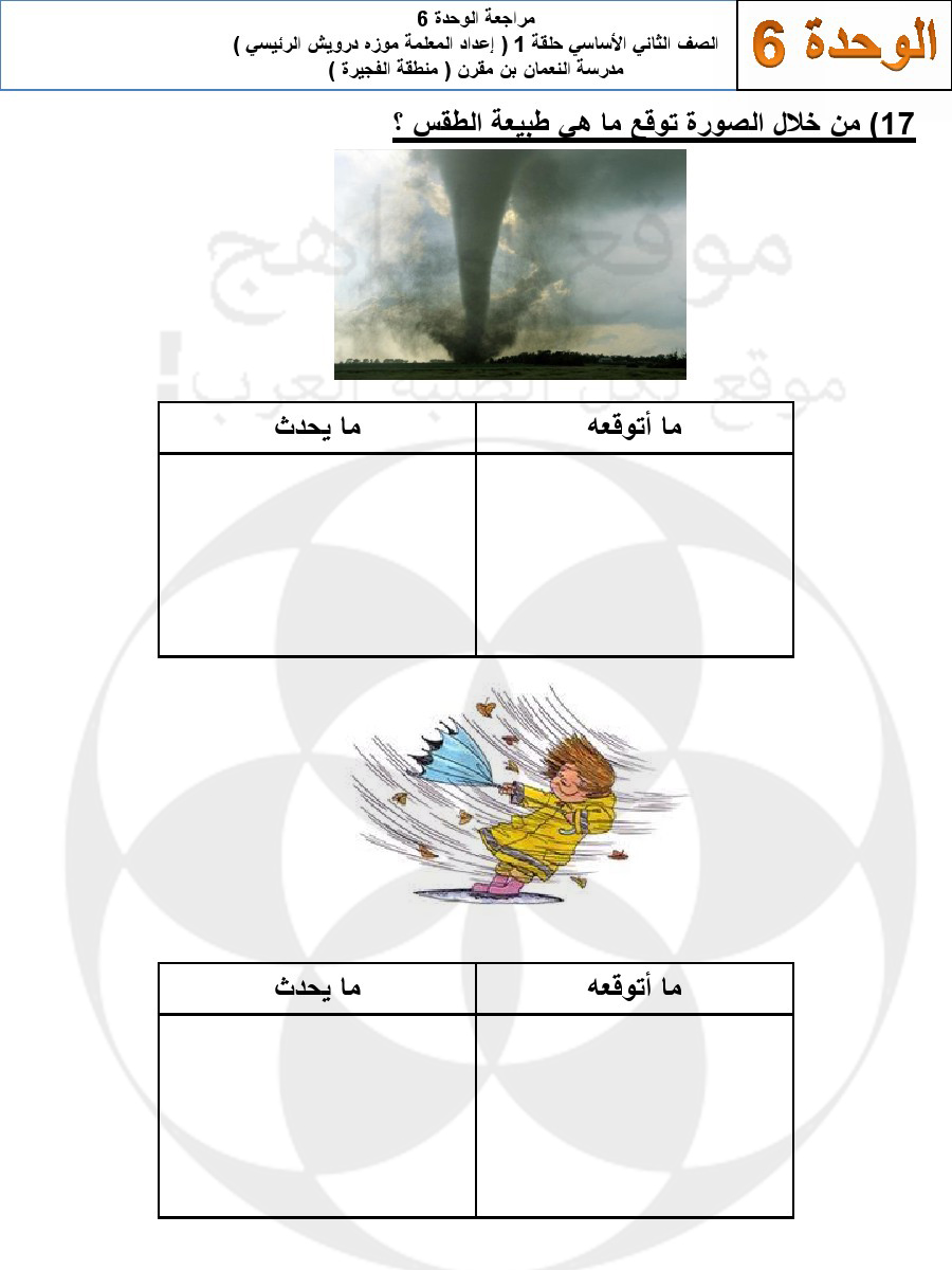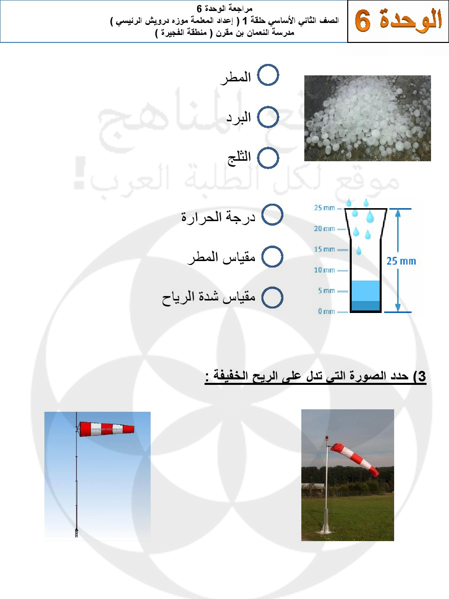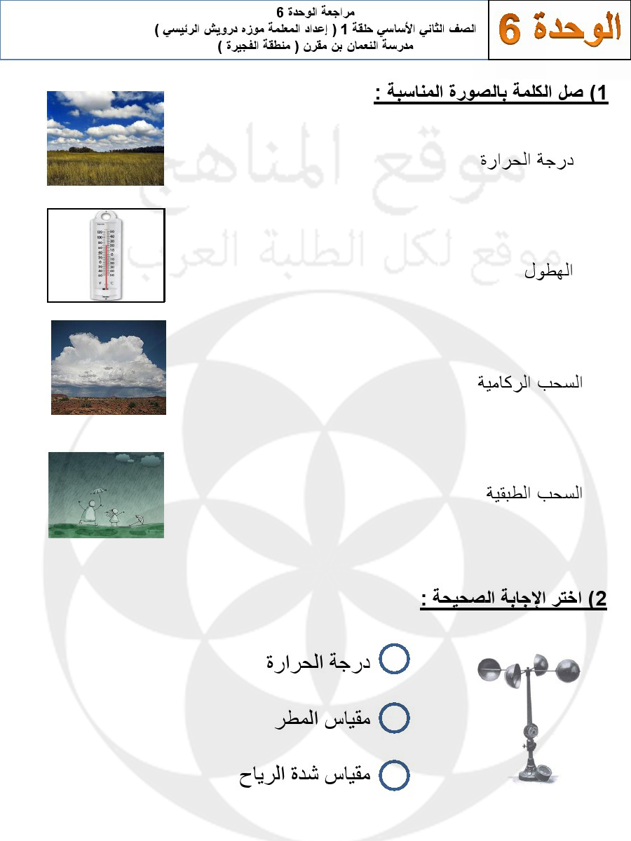 معلومات الملف: الصف الثاني, الفصل الثاني, علوم, مراجعة الوحدة السادسة | ||
