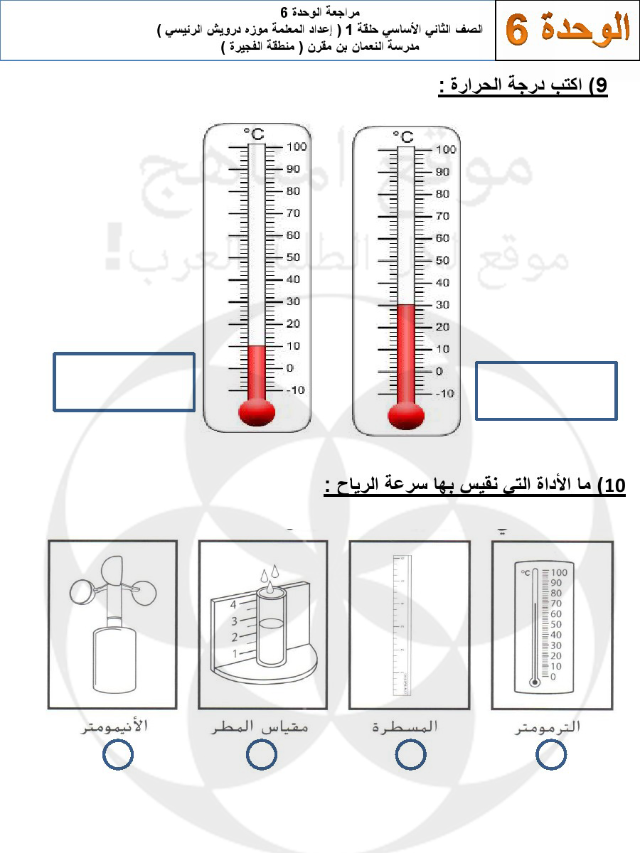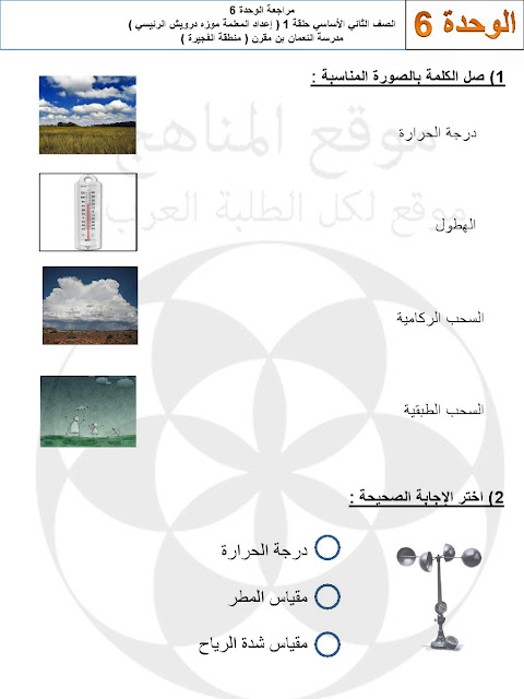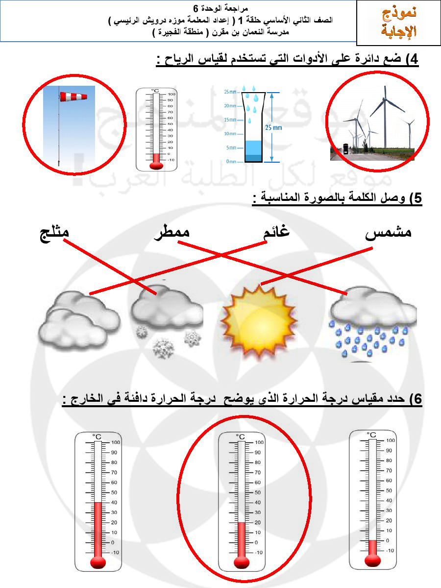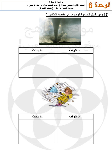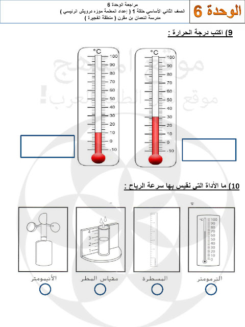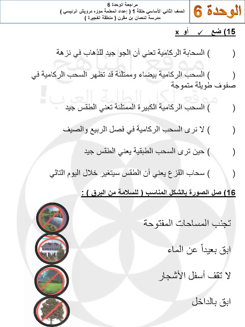 معلومات الملف: الصف الثاني, الفصل الثاني, علوم, مراجعة الوحدة السادسة | ||