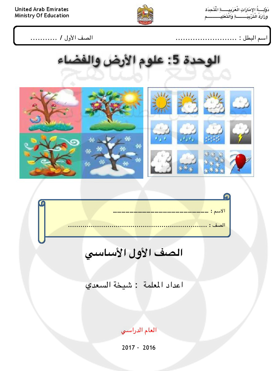يقدم لكم موقع المناهج أوراق عمل الوحدة الخامسة في مادة العلوم للصف الأول- الفصل الثاني من العام الدراسي 2016-2017