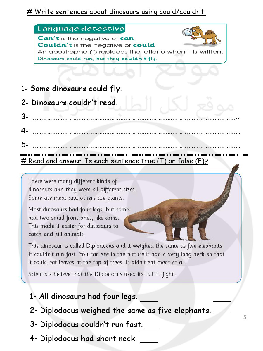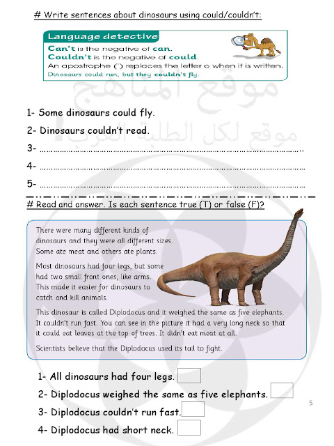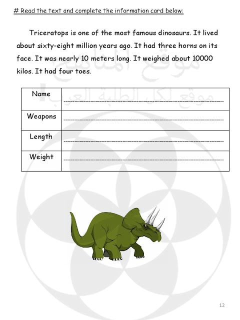 معلومات الملف: الصف الرابع, الفصل الثاني, لغة انكليزية, جميع أوراق عمل الوحدة السادسة(الديناصورات) كتاب الكتروني وصور | ||