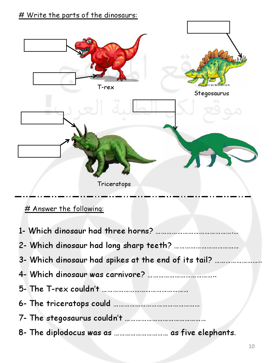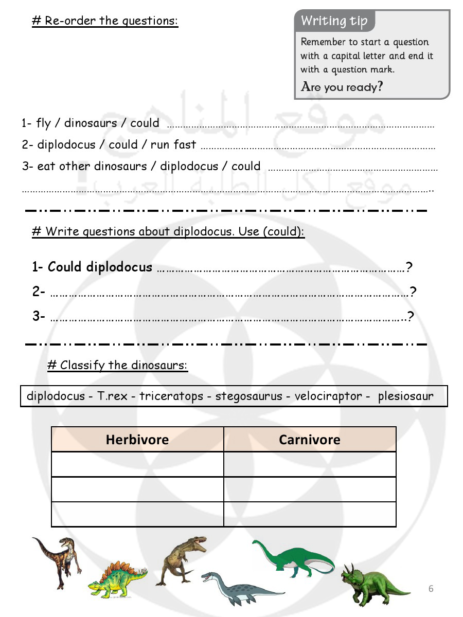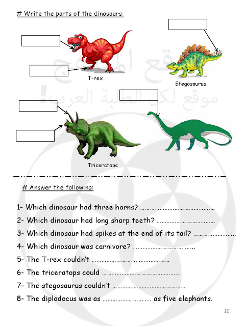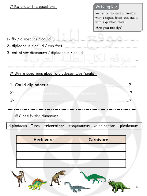 | جميع أوراق عمل الوحدة السادسة(الديناصورات) كتاب الكتروني وصور | ||