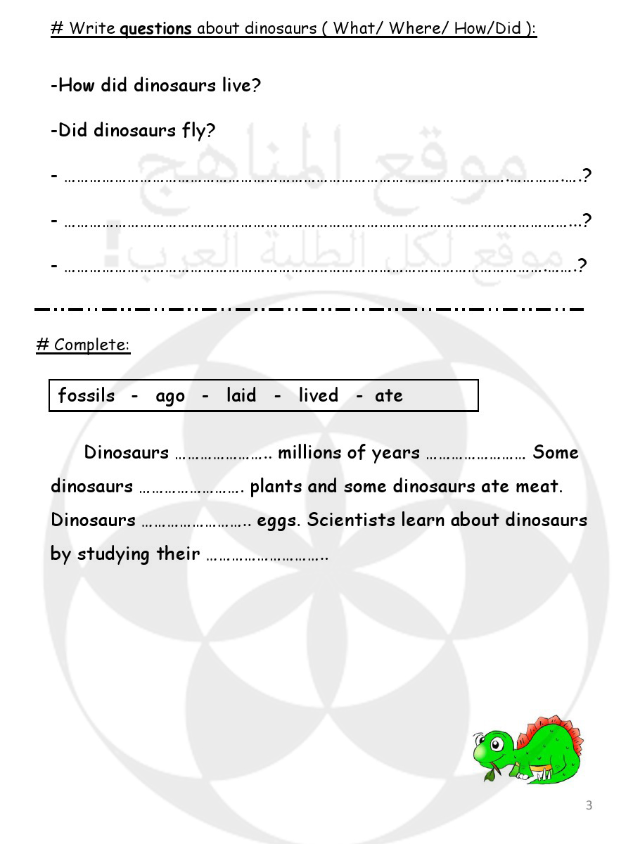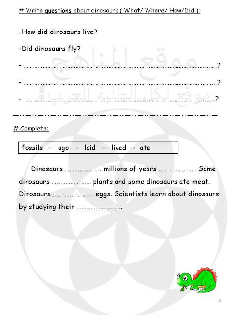 جميع أوراق عمل الوحدة السادسة(الديناصورات) كتاب الكتروني وصور | ||