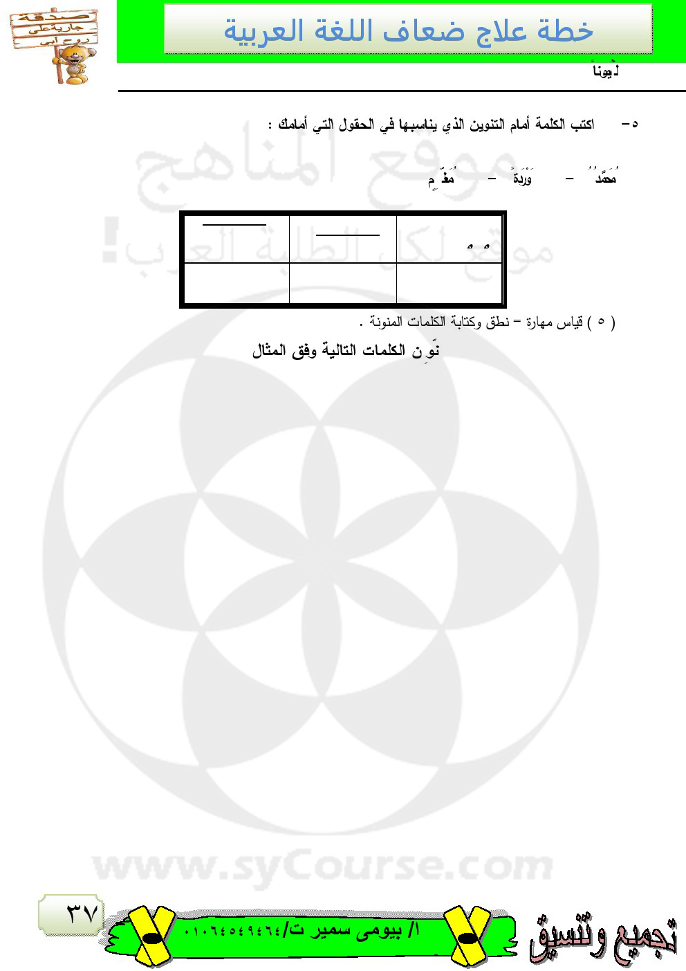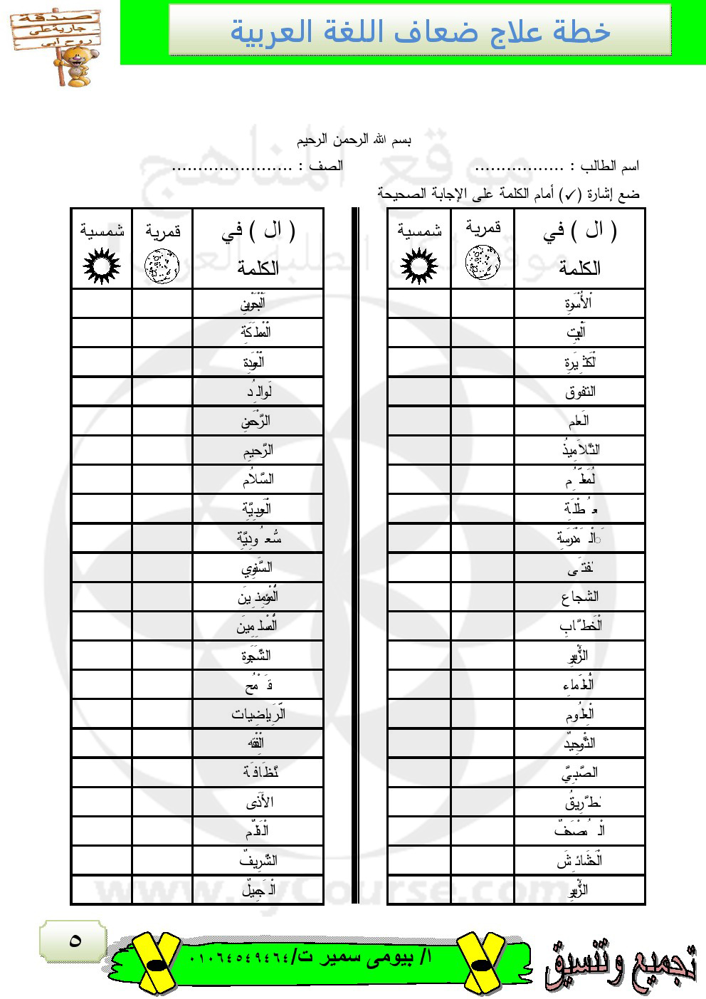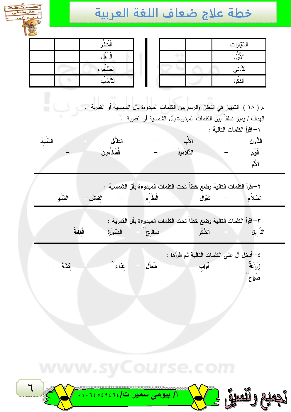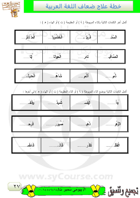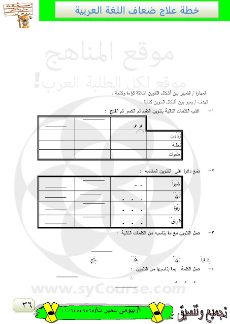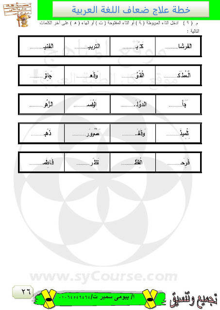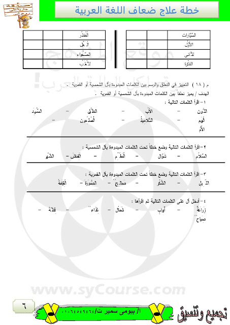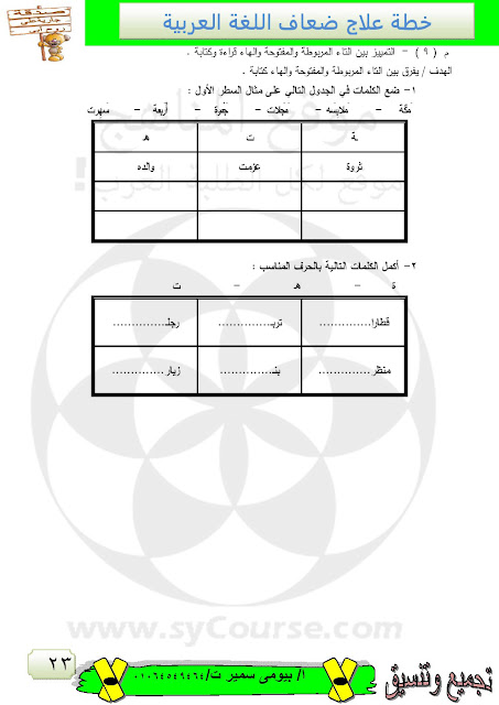 | خطة علاج للضعاف في مادة اللغة العربية | ||